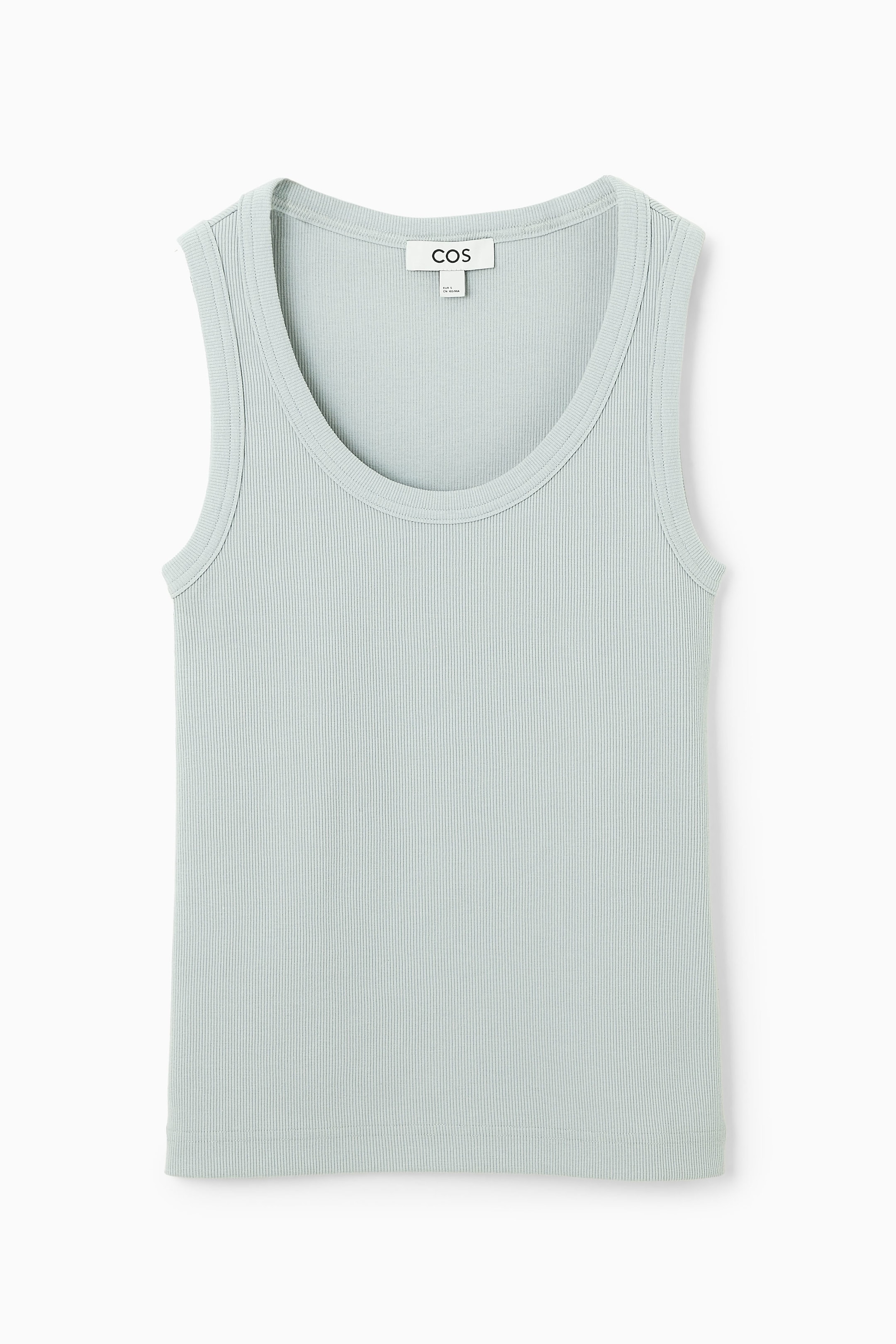 The COS ribbed tank will form the foundation of so many outfits. It's crafted from organic cotton-blend jersey that's lightweight and supremely soft and designed with a scoop neck and wide shoulder straps. Tuck it into a pair of our signature trousers.