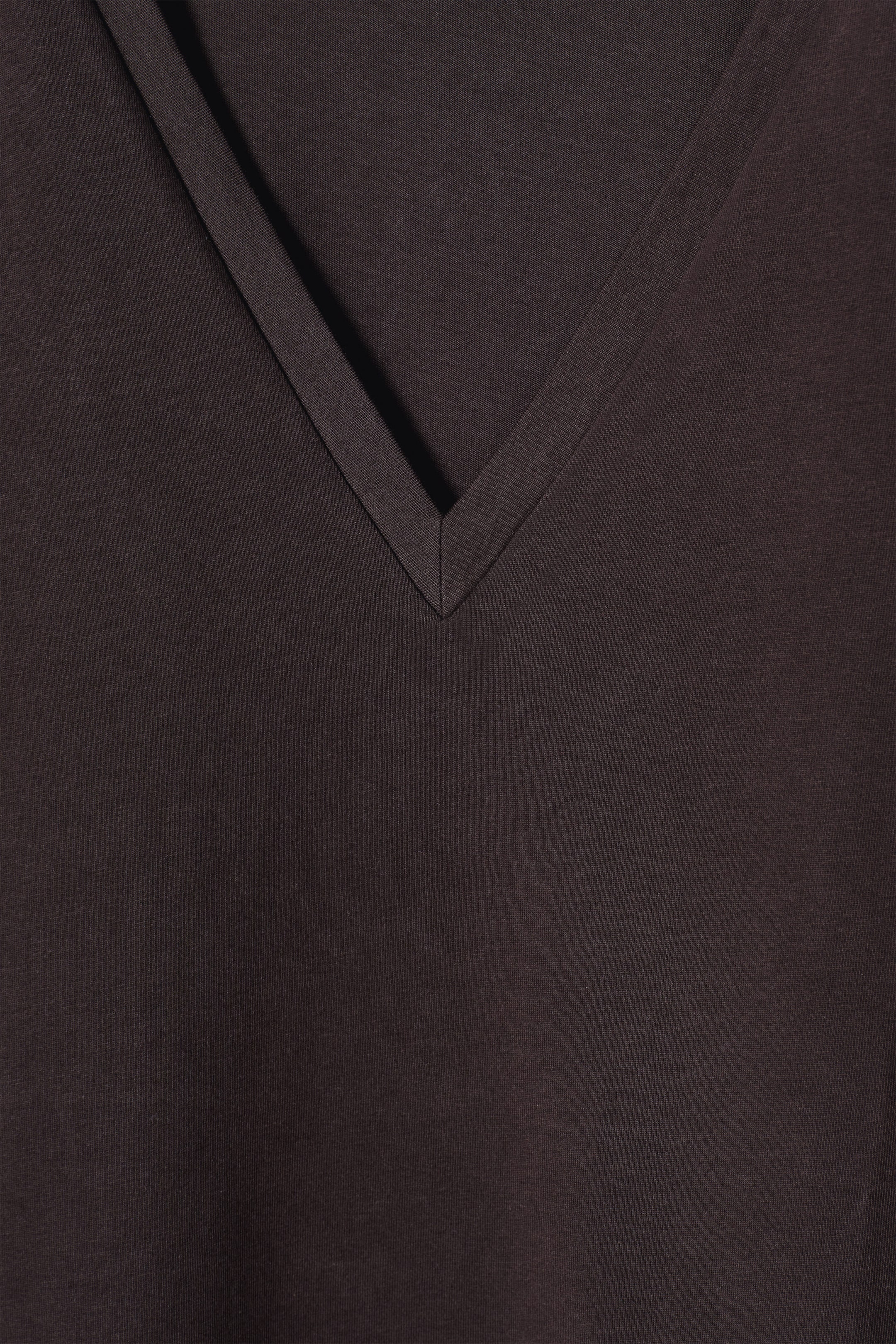 The COS womenswear team present an everyday icon, perfected. This refined T-shirt is crafted from lightweight 150gsm cotton-jersey, chosen for its comfort and unparalleled softness. It's cut in a classic V-neck shape and comes in an enduring espresso tone.