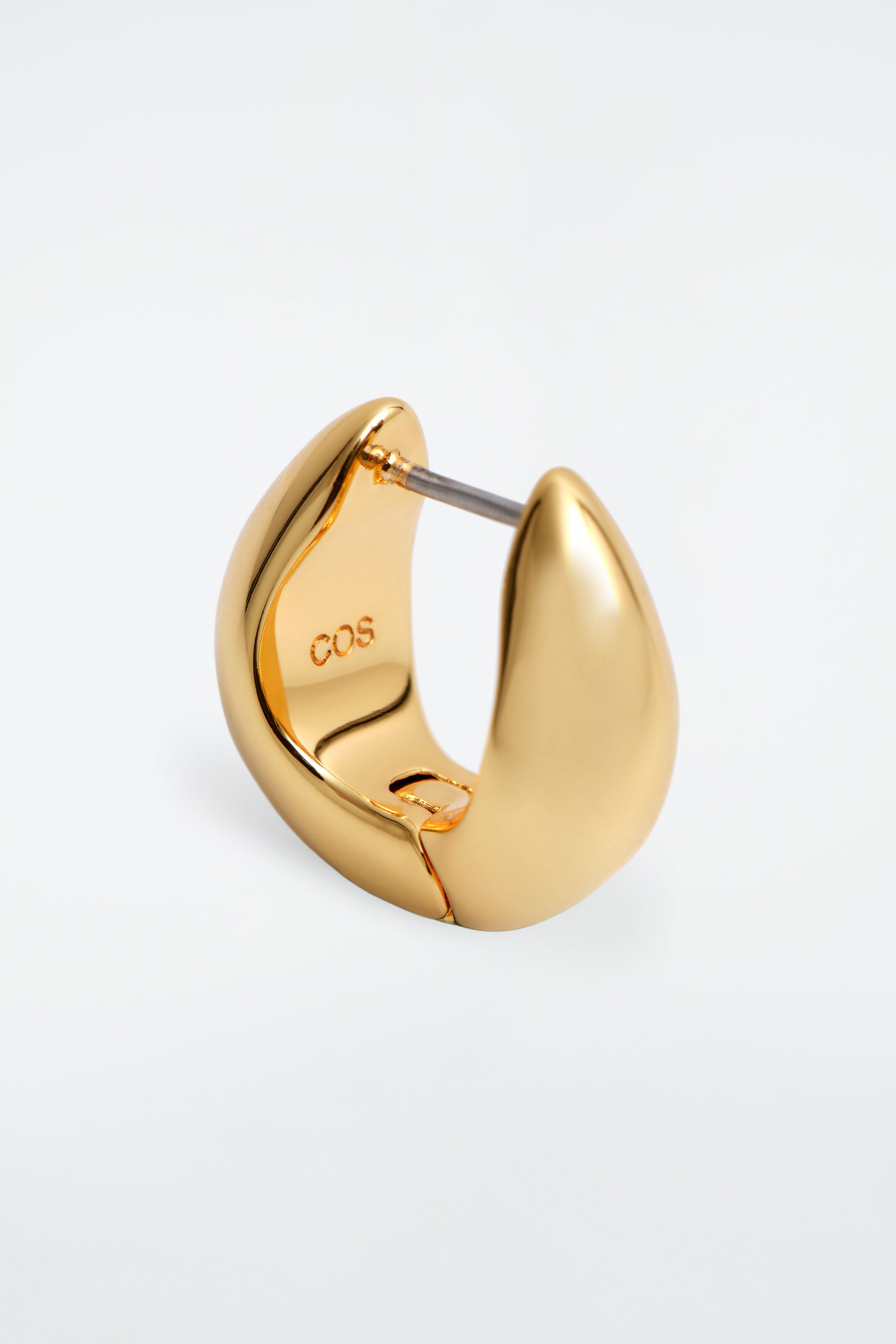 Crafted from gold-plated recycled brass, these mini hoop earrings have a simple organic shape that curves around the ear. They're a versatile addition to any outfit and work just as well for daytime as they do evening.