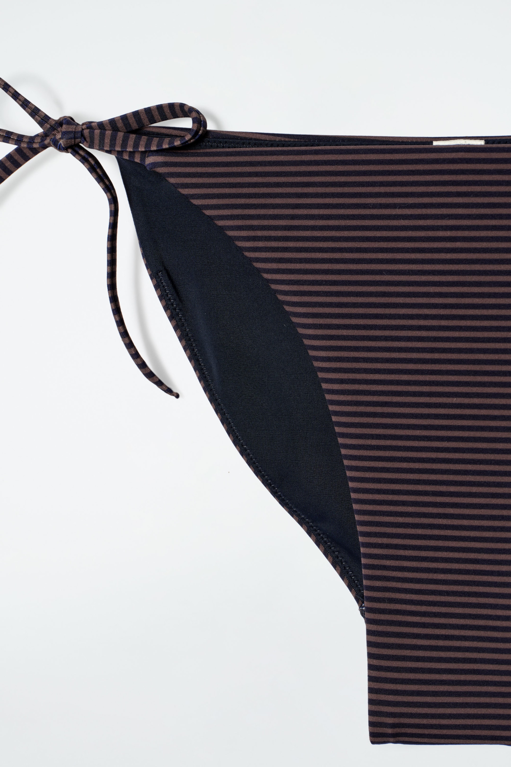 These bikini briefs are a timeless option for days spent in the sun. Decorated with navy and chocolate-brown stripes, they're cut with bagged-out seams for a clean finish and have delicate ties at either side. They're a natural choice for getaway packing; style them with the matching bikini top.