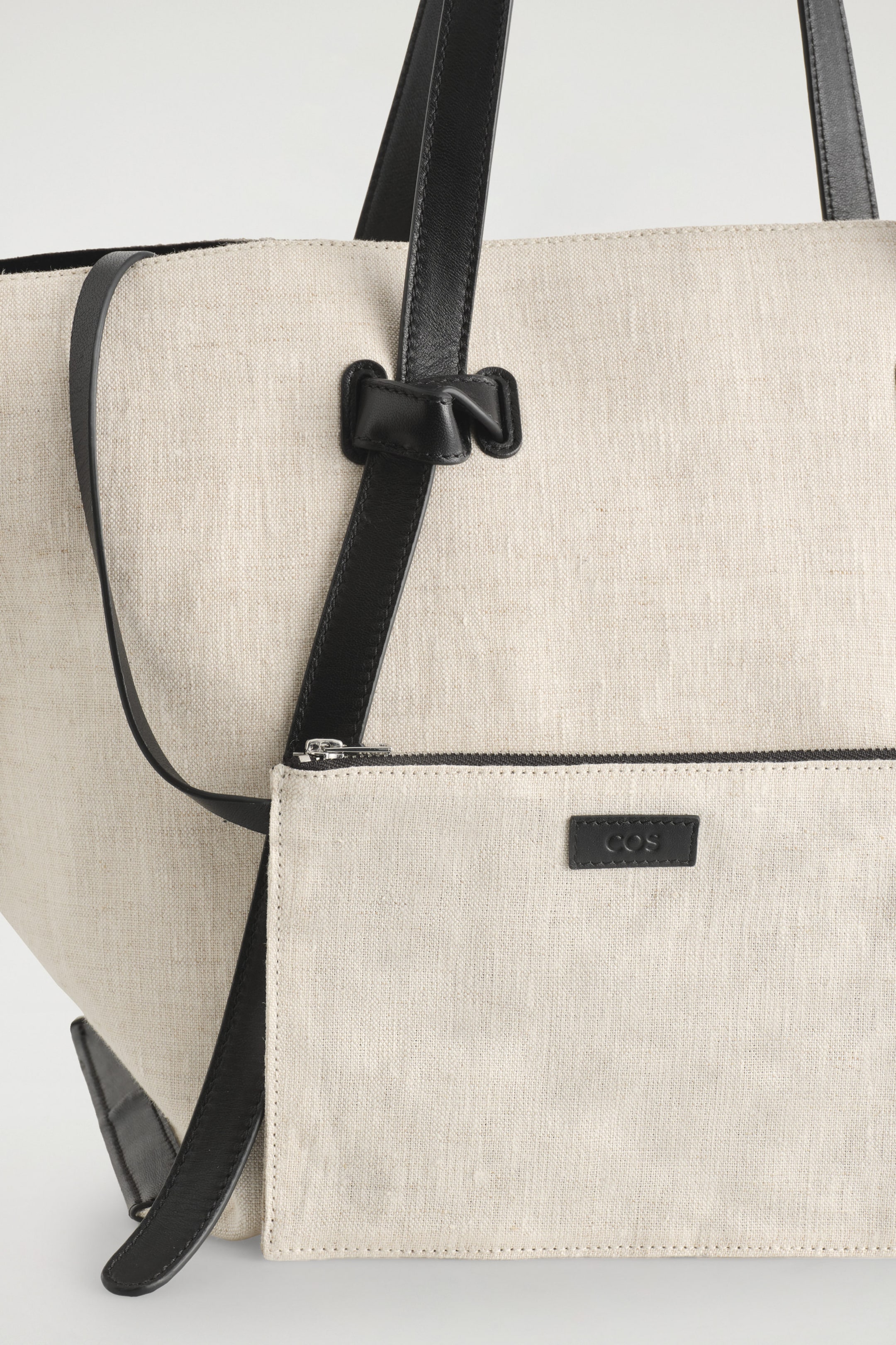 The Pinch tote is destined for effortless days in the city. It's crafted from linen in a neutral oatmeal tone and features knotted leather straps and a smooth base for a refined finishing touch. Inside, a zipped wallet keeps your essentials close to hand.