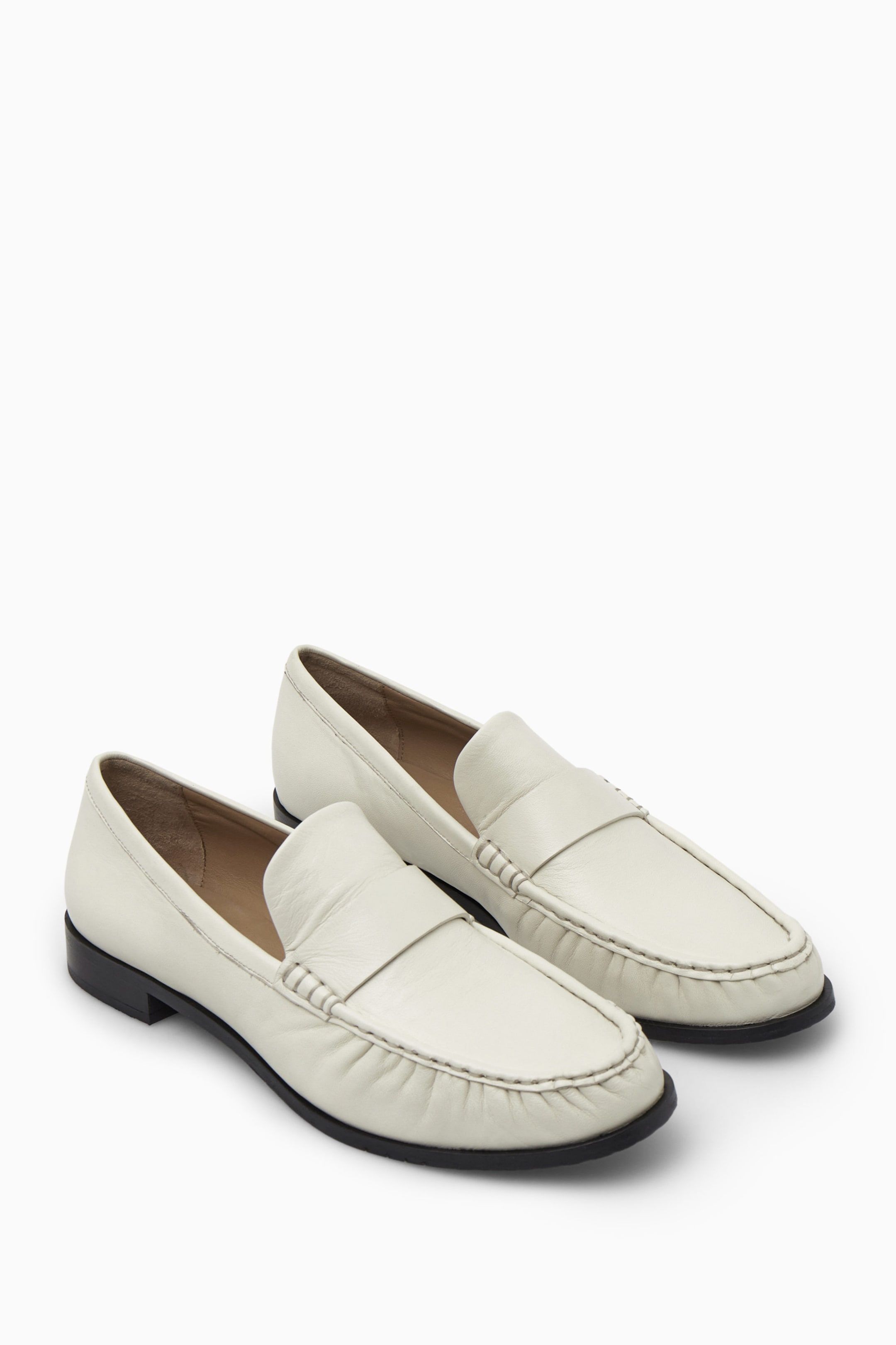 These COS leather loafers are a reimagined classic. Crafted from supple chrome-free leather, they have almond-shaped toes and low stacked heels. They feature a signature penny strap and tonal topstitching.