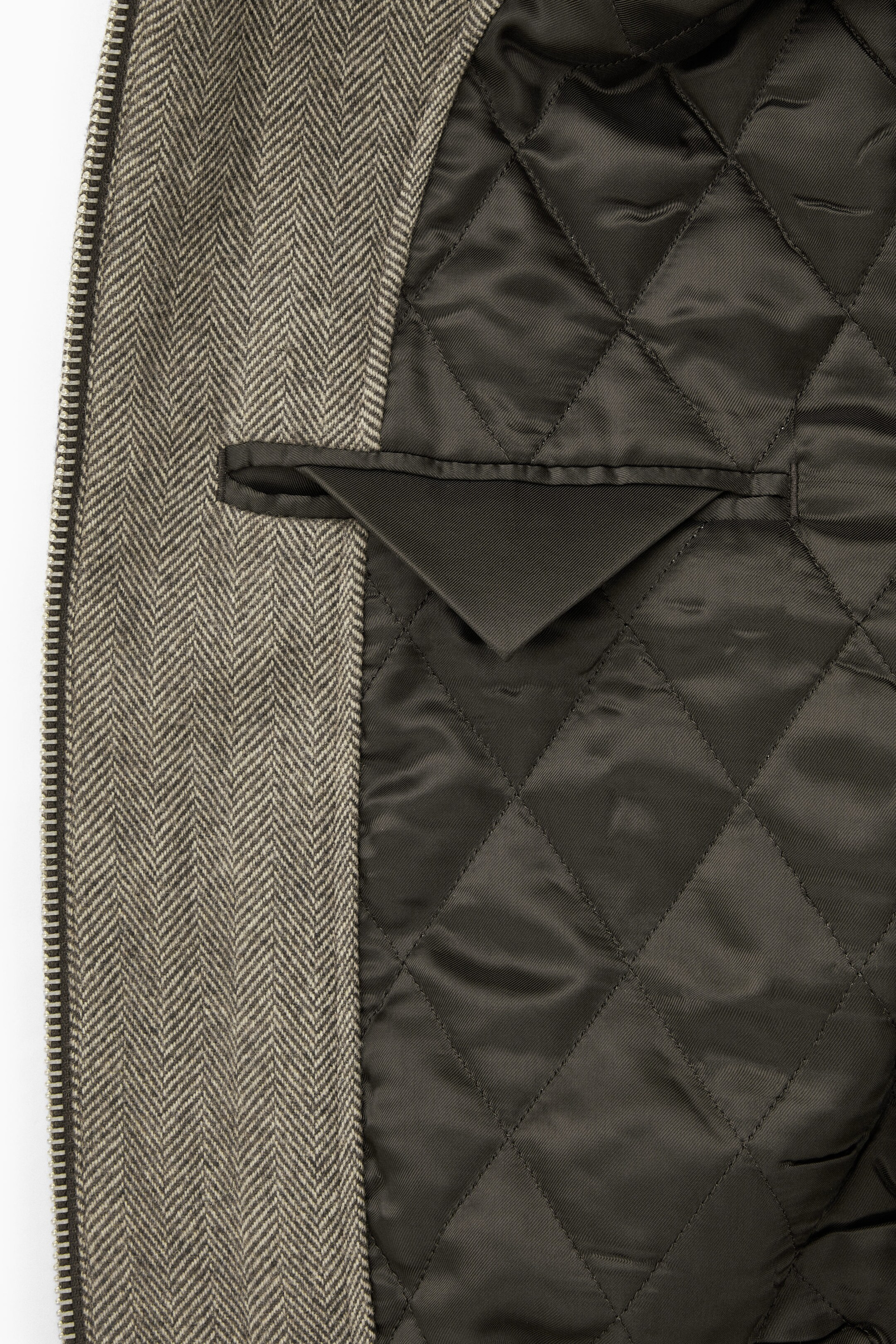 This cropped jacket marries heritage style with the silhouette of the season: the power shoulder. Crafted from wool-blend herringbone, it's cut in an oversized shape that's enhanced by the structured shoulders and elasticated hem. The lightly padded diamond quilting will be warm enough to see you through the transitional months. For a complete set wear with the matching trousers.
