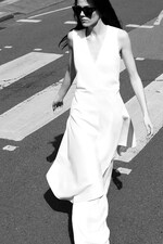 This season’s summer midi dresses champion clean lines and considered details, emphasised through a simple monochromatic palette. Asymmetric hems and thoughtful gathering transform a simple white cotton dress into a statement piece – one that will easily translate from seaside to city surroundings. Worn over wide-leg trousers with oversized sunglasses, a midi-length style channels ‘90s minimalism with a modern refinement. Alternatively, striking earrings and a sculptural heel will lend a sense of occasion.