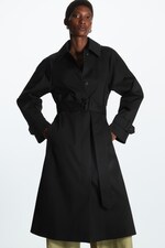 A heritage piece, this iteration is crafted from lightweight, structured cotton twill and finished with the hallmarks of the traditional trench: a concealed front fastening, a pointed collar, a functional storm flap and a fabric-covered tie belt.