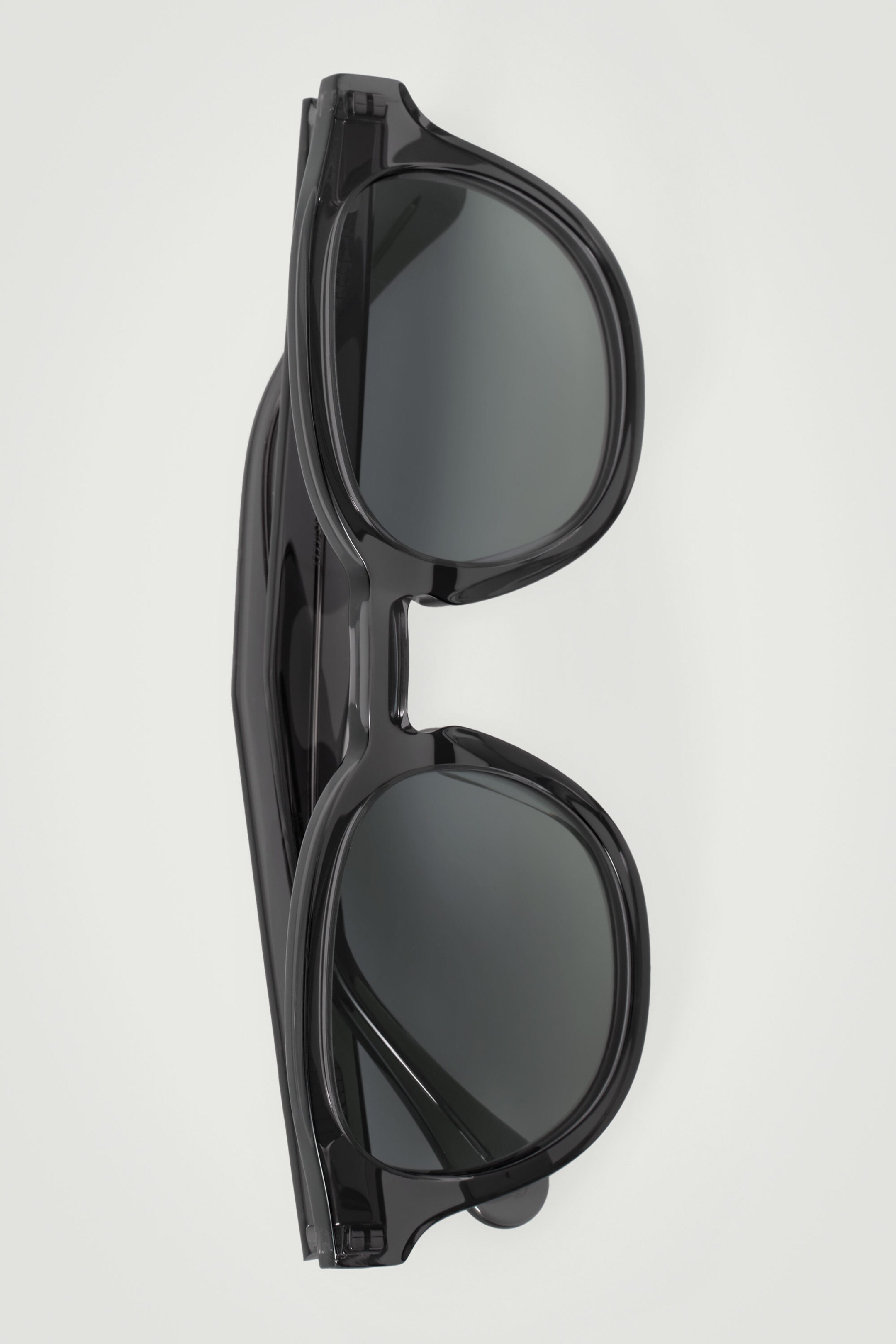 This season, the COS accessories team interpret classic D-frame sunglasses in a modern transparent grey colourway. They're designed with tinted lenses and come in a protective pouch.