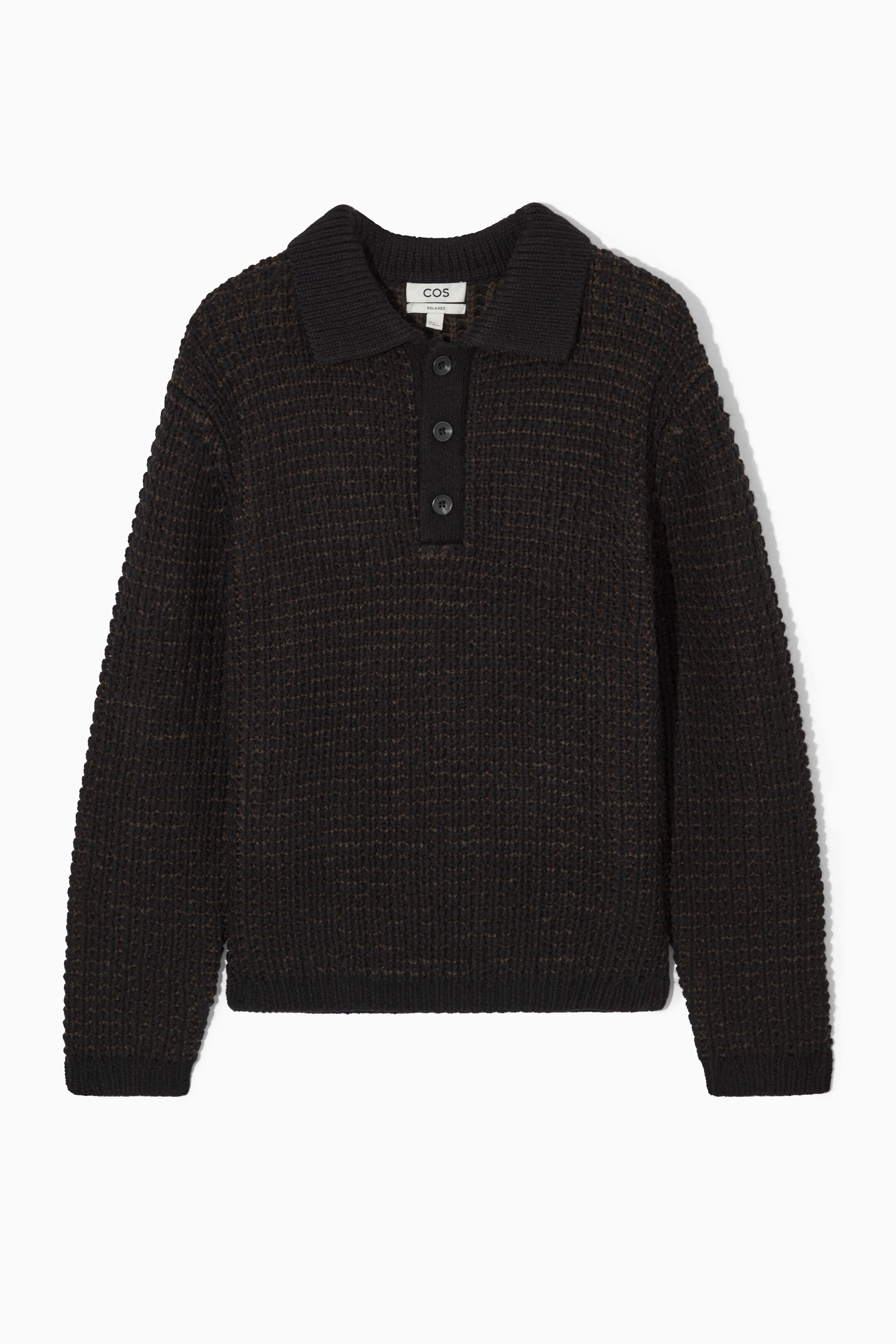 Retold through premium yarns and heightened textures, COS knitted polo shirts are a refined take on the wardrobe staple. Offered in a palette of neutrals and seasonal colours, our men's knitted polo shirts are crafted from the finest organic cotton, wool and cashmere fibres that have natural temperature-regulating properties. Rugby polo shirts are decked with signature stripes, whereas intricate cable stitches and waffle knits lend craft and tactility.