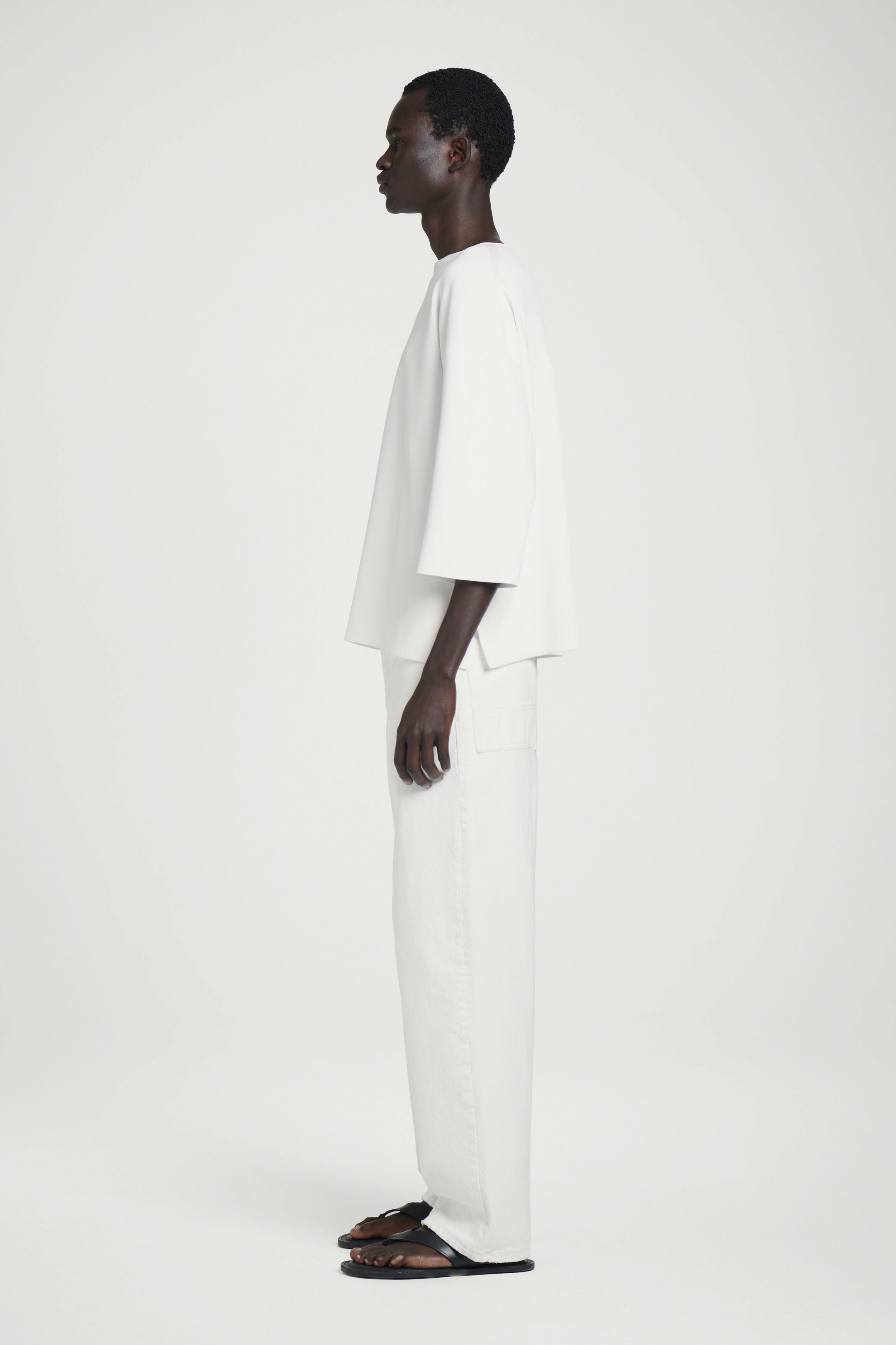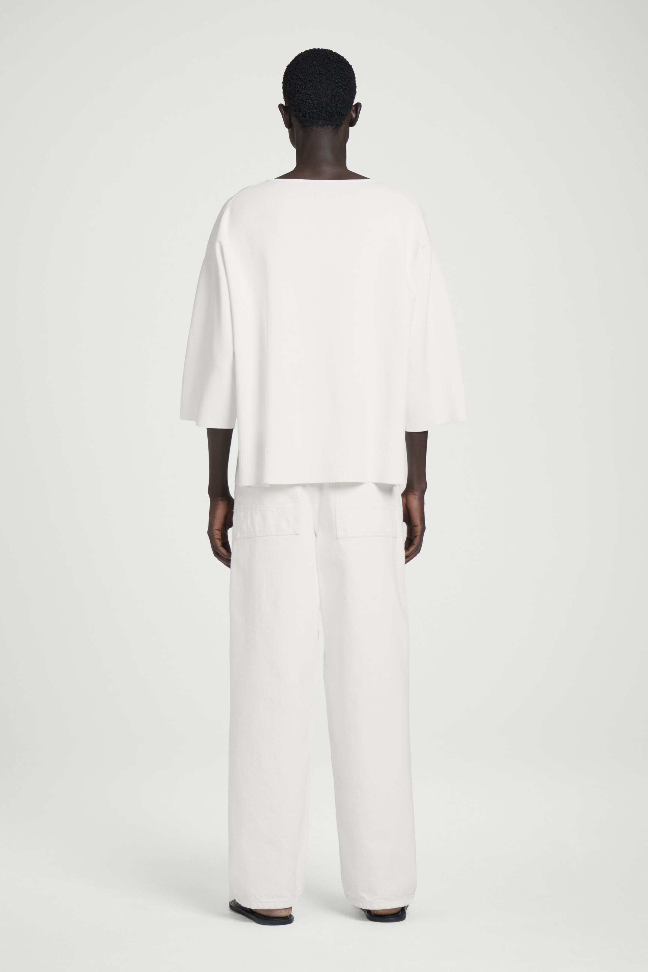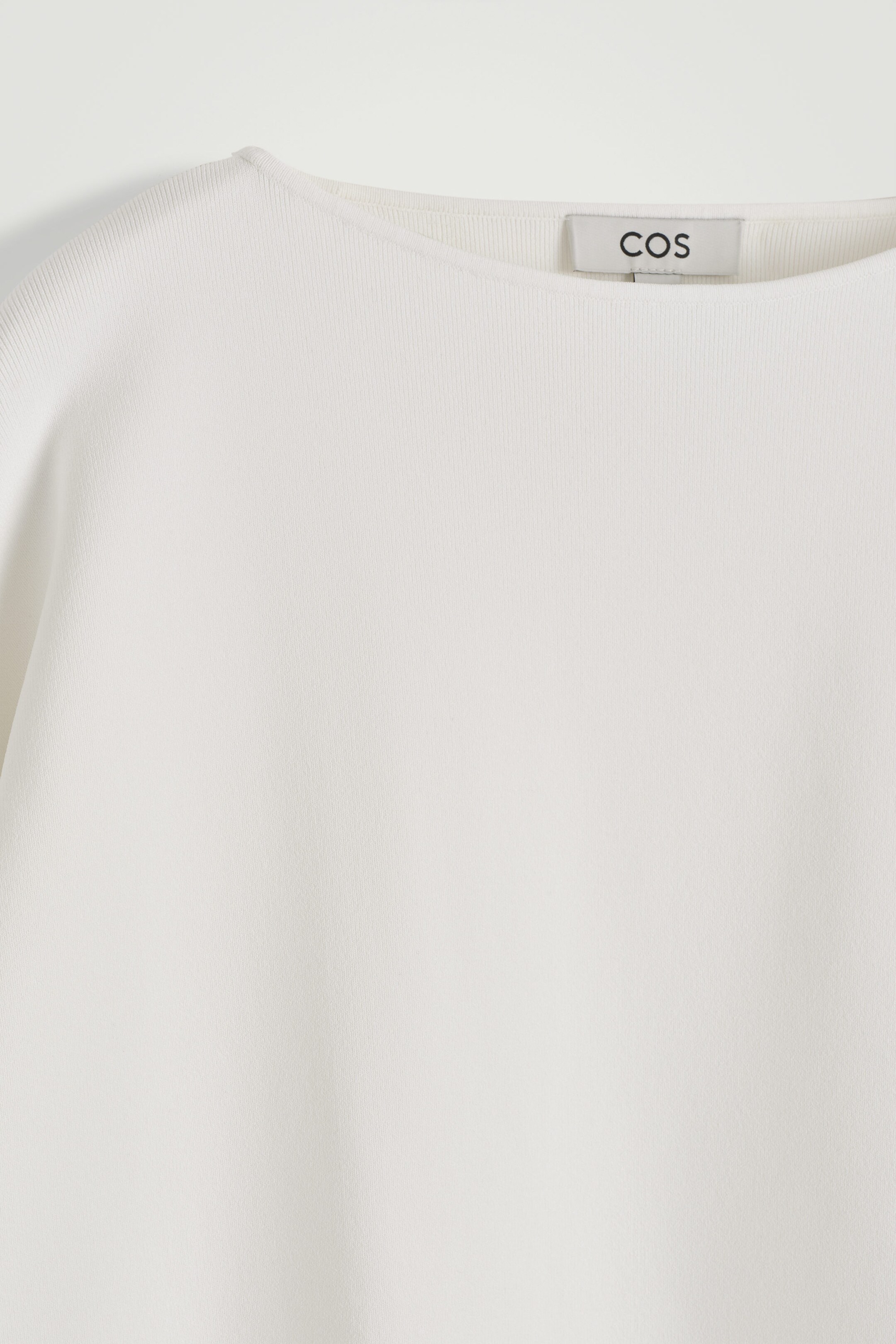 Reframing knitwear for summer, this oversized jumper is designed with short sleeves and a modern boat neck. It's finely knitted in a 16-gauge stitch and comes in a subdued white tone that's easy to style.