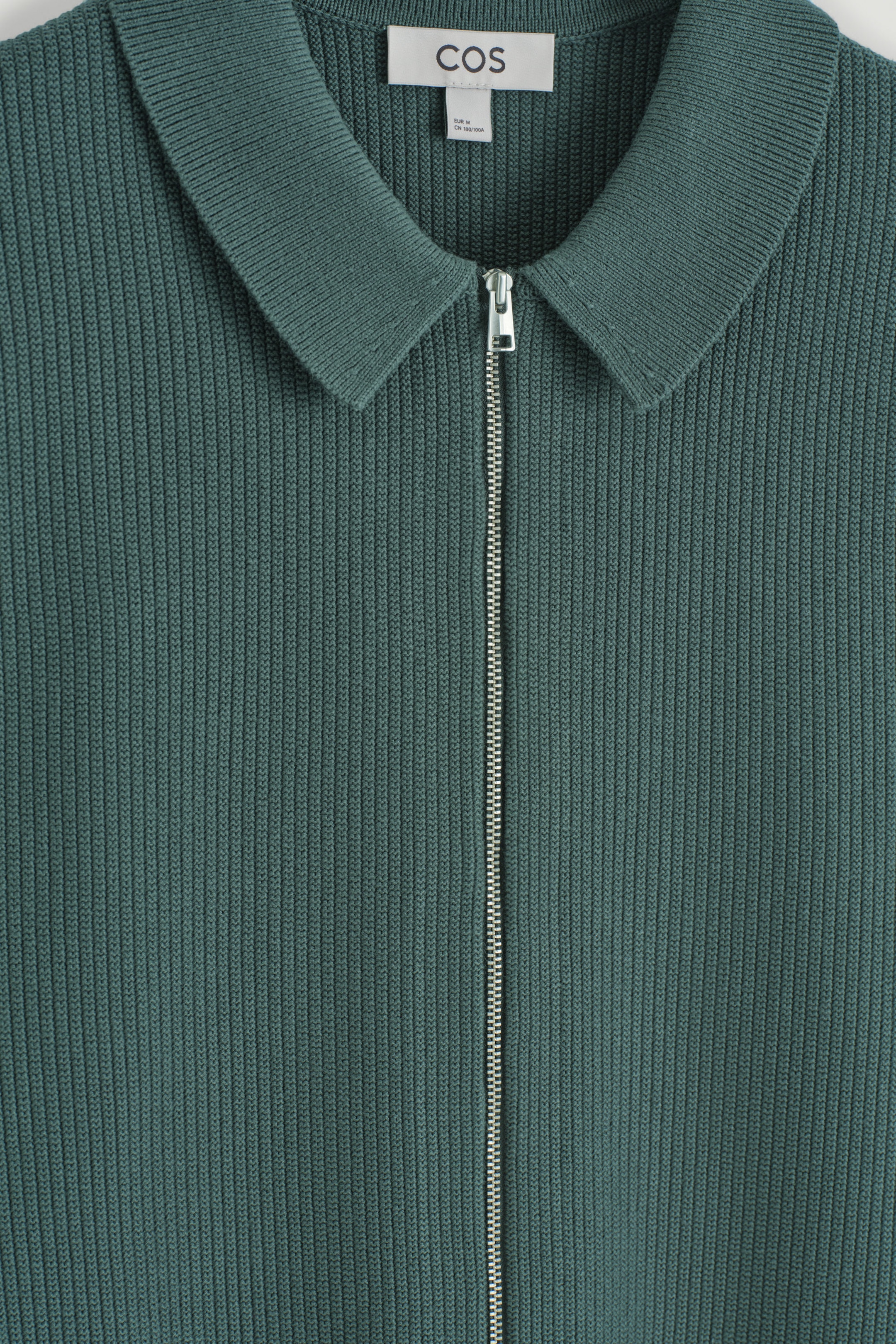 Rich textures subtly transform wardrobe classics this season. Cut in a laid-back shape, this short-sleeved shirt is waffle-knitted from naturally breathable cotton and designed with a pointed collar and a silver-tone zip. Style it on its own or layer it over a tank top.