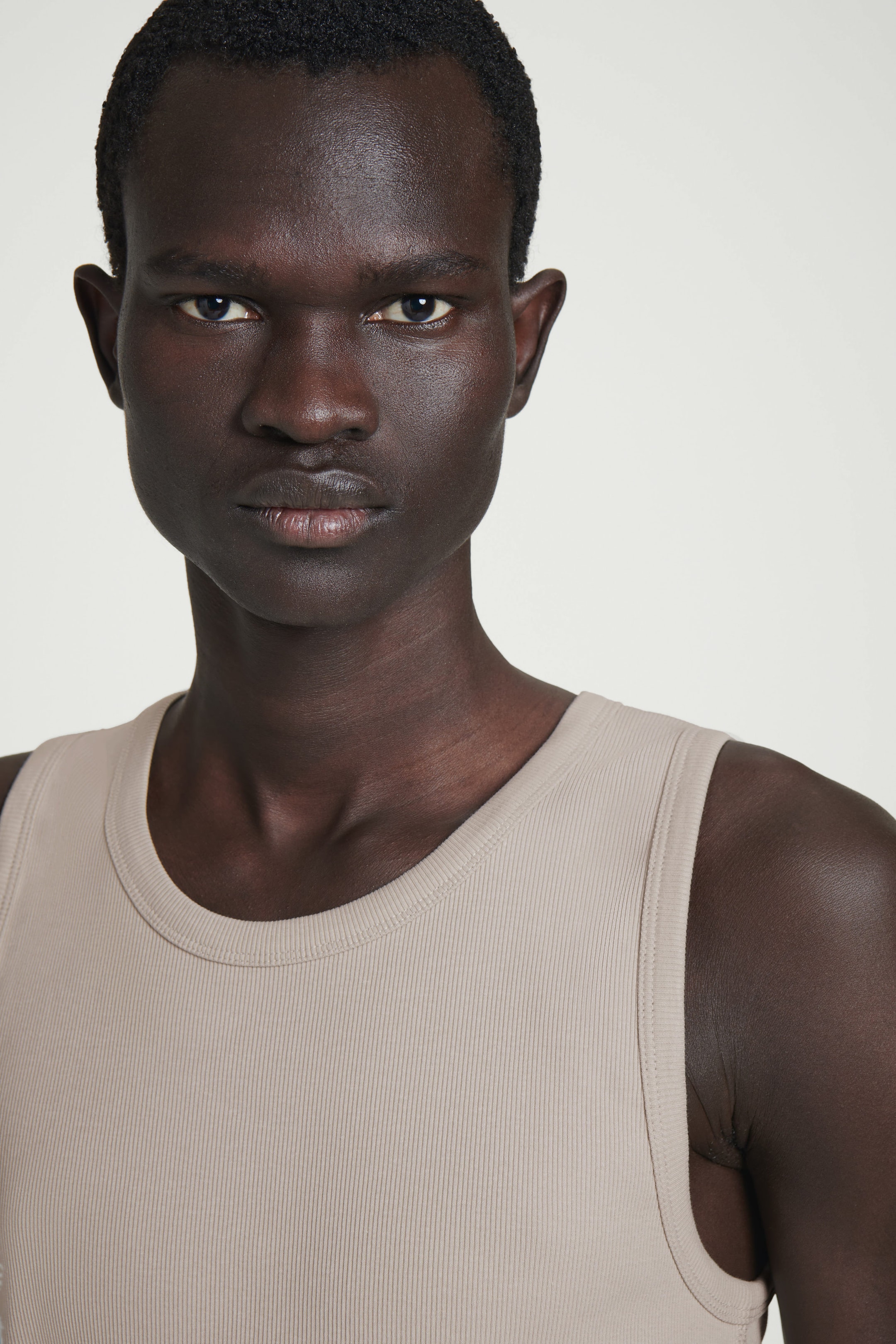 This ribbed tank top is the perfect basic to wear on its own or layered underneath overshirts and cardigans. Spun from soft organic cotton-blend jersey, it's cut for a slim fit and has a scooped neck and wide armholes for comfort.