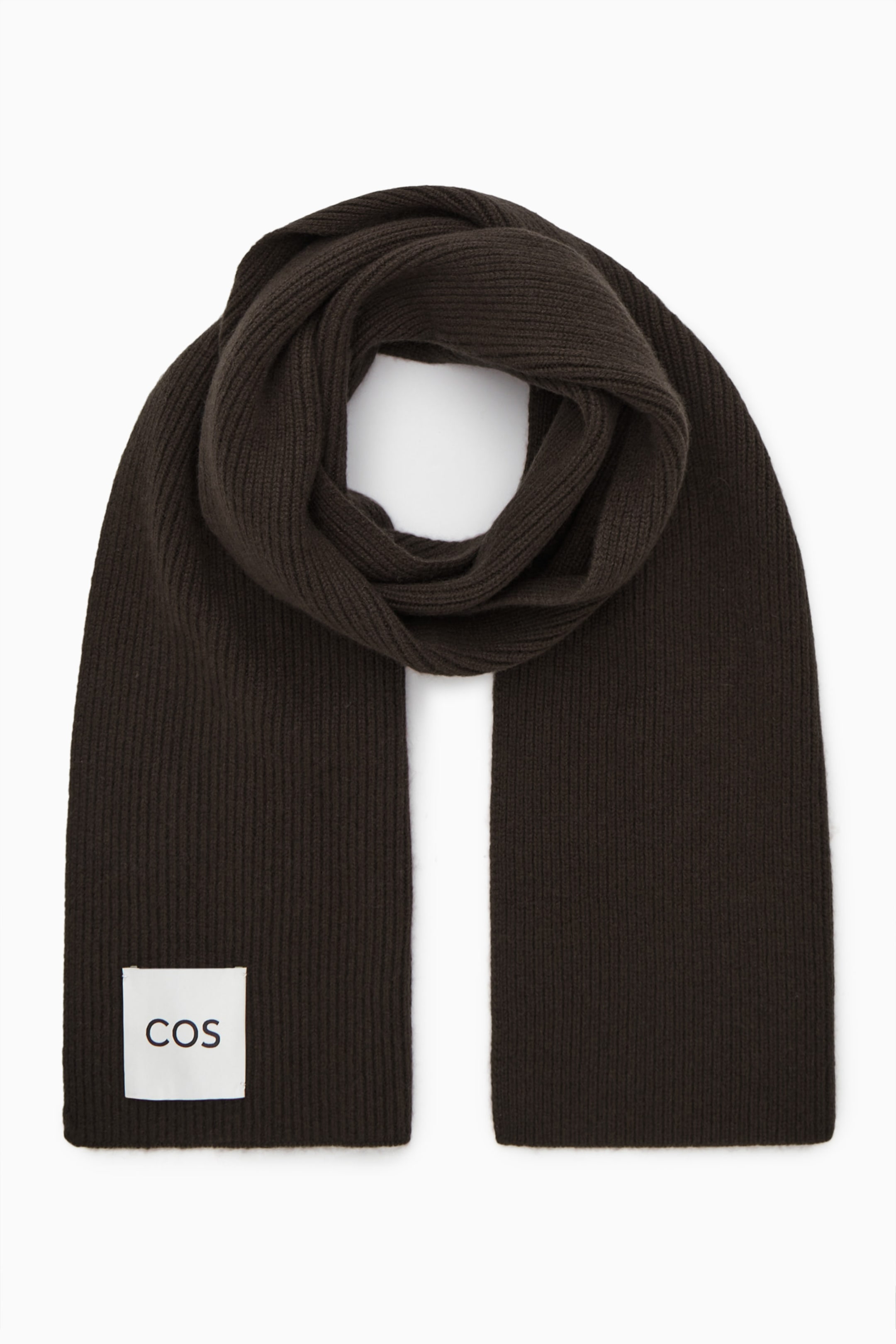 Rib-knitted from a luxurious traceable wool and cashmere blend that's soft to the touch, this dark-brown scarf is the perfect size to wrap up in throughout the cooler months. It's finished with a minimal COS logo. For a complete set, wear with its matching item.