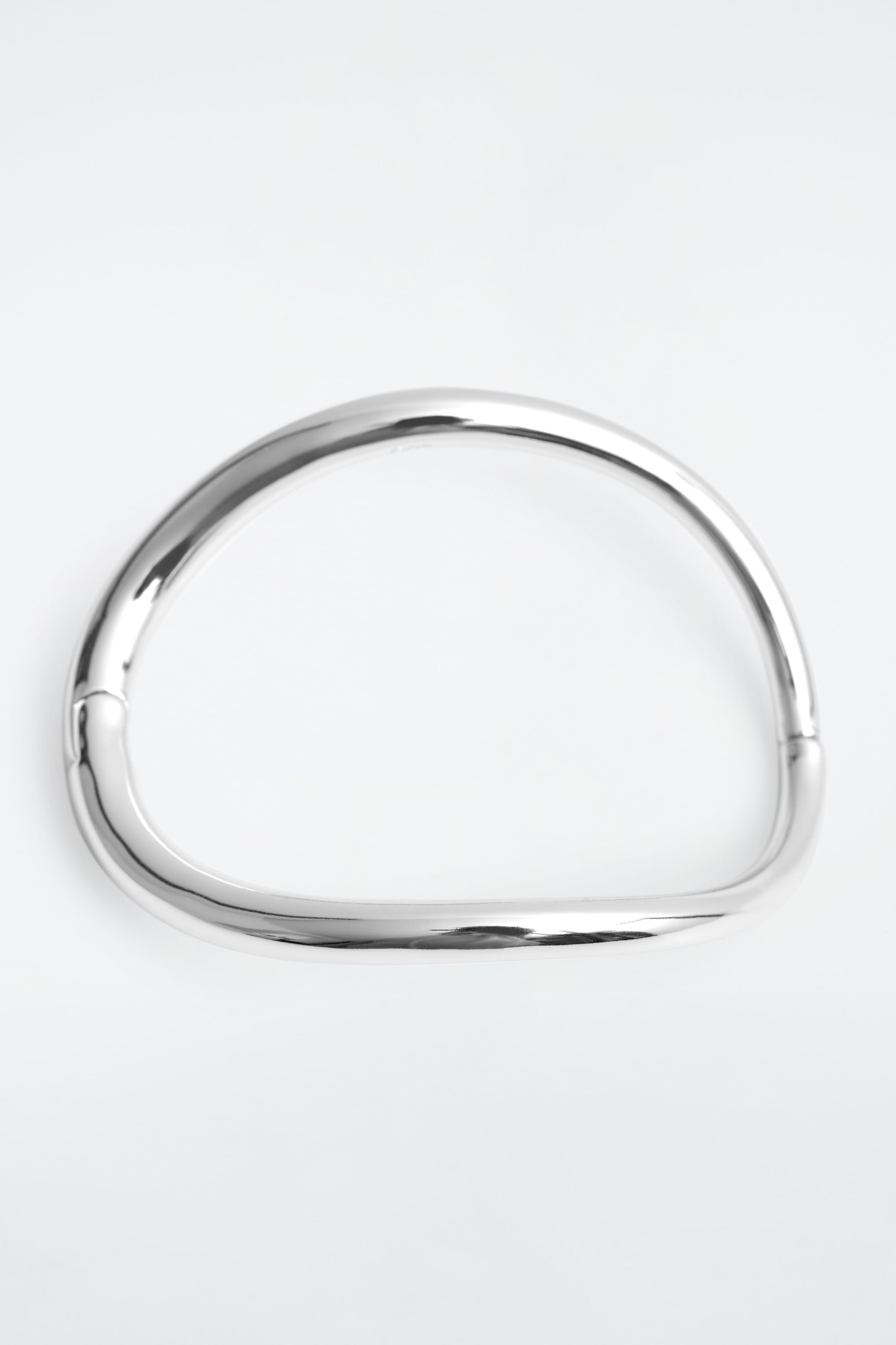 Crafted from silver-plated recycled brass, this refined bangle is sculpted in an organically curved shape and can be worn solo or stacked with other pieces. Style it with mixed metals for a modern look.