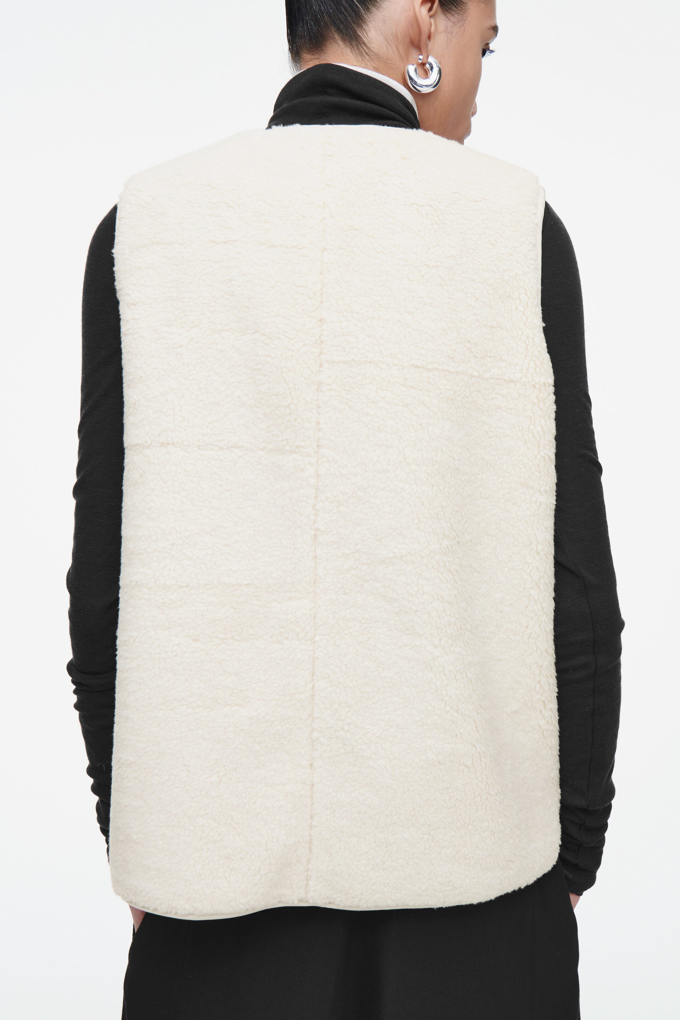This faux shearling gilet channels both cosiness and refinement for the autumn/winter season. Offered in a soft ivory tone, it features a V-neckline and front welt pockets that you can rest your hands in. It's cut in a boxy, oversized shape and finished with a smooth lining and tonal binding.