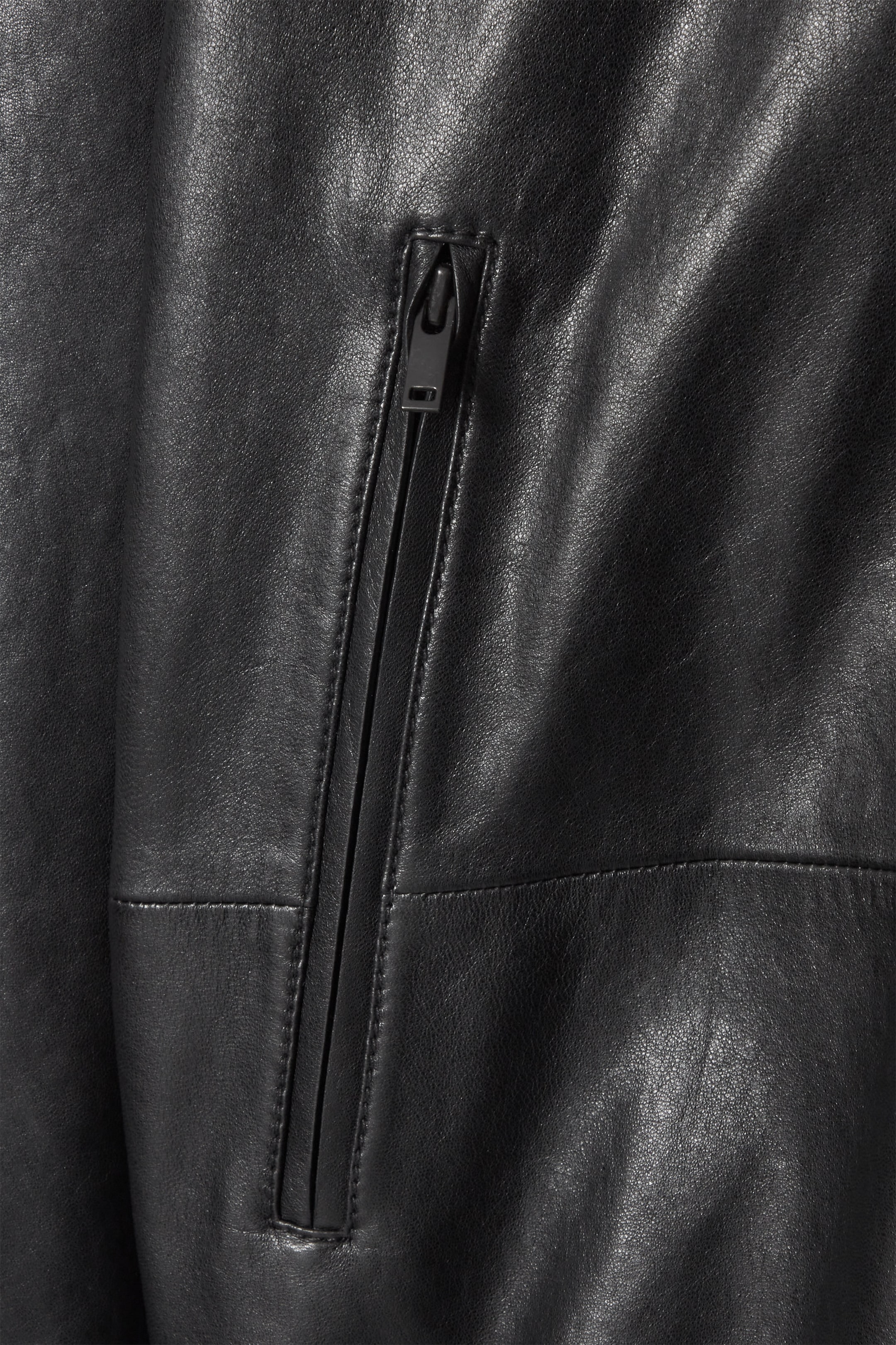 This leather jacket is a dynamic take on '80s-inflected styling. It's crafted from butter-soft hide that's tanned an enduring black shade and designed with functional zips at the front, pockets and cuffs. The elasticated panel at the back subtly defines the relaxed silhouette.