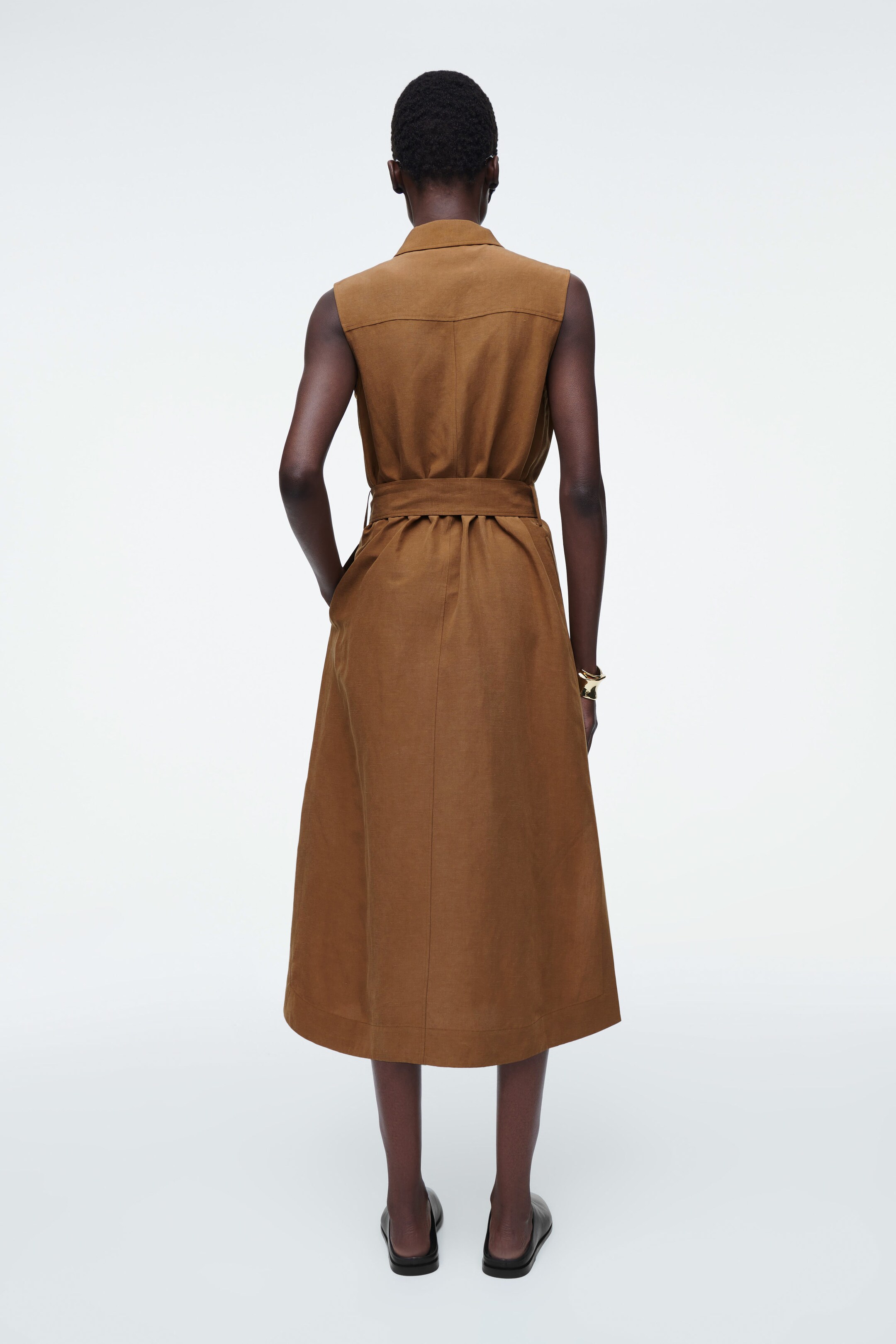 Shirt dresses are a cornerstone of the COS womenswear collection. Designed with nods to utility, this sleeveless piece features a pointed collar, chest flap pocket and tonal belt to define the waist. It's crafted from a TENCEL™ Lyocell and linen blend chosen for its naturally lightweight feel.