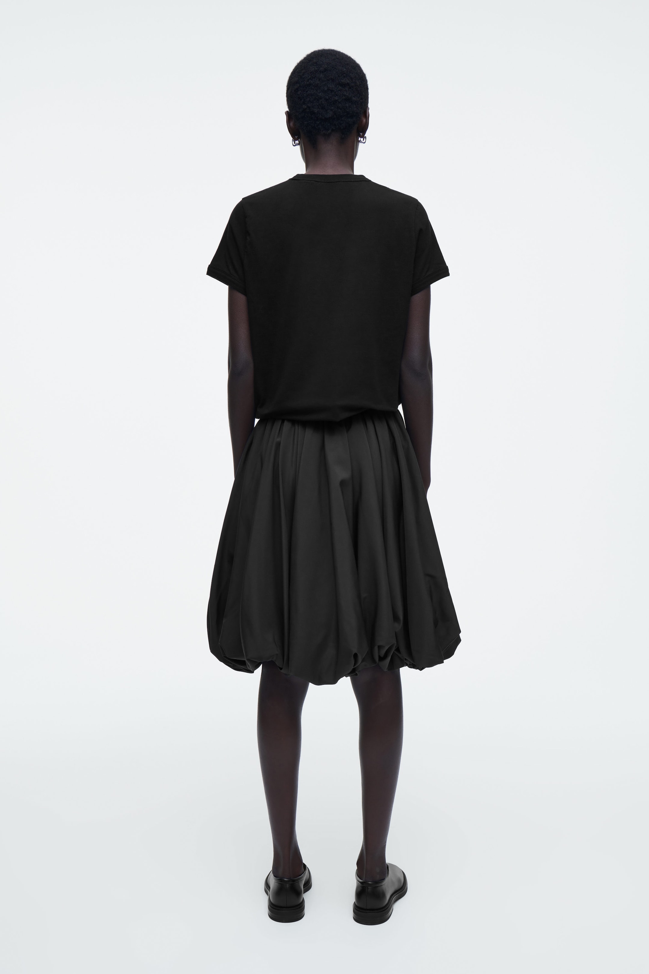 Imbued with eighties overtones, this bubble-hem mini skirt will be the focal point of any look. It's crafted from a lightweight recycled fabric and designed with an elasticated waistband and side-seam pockets. Style it with knee-high boots.