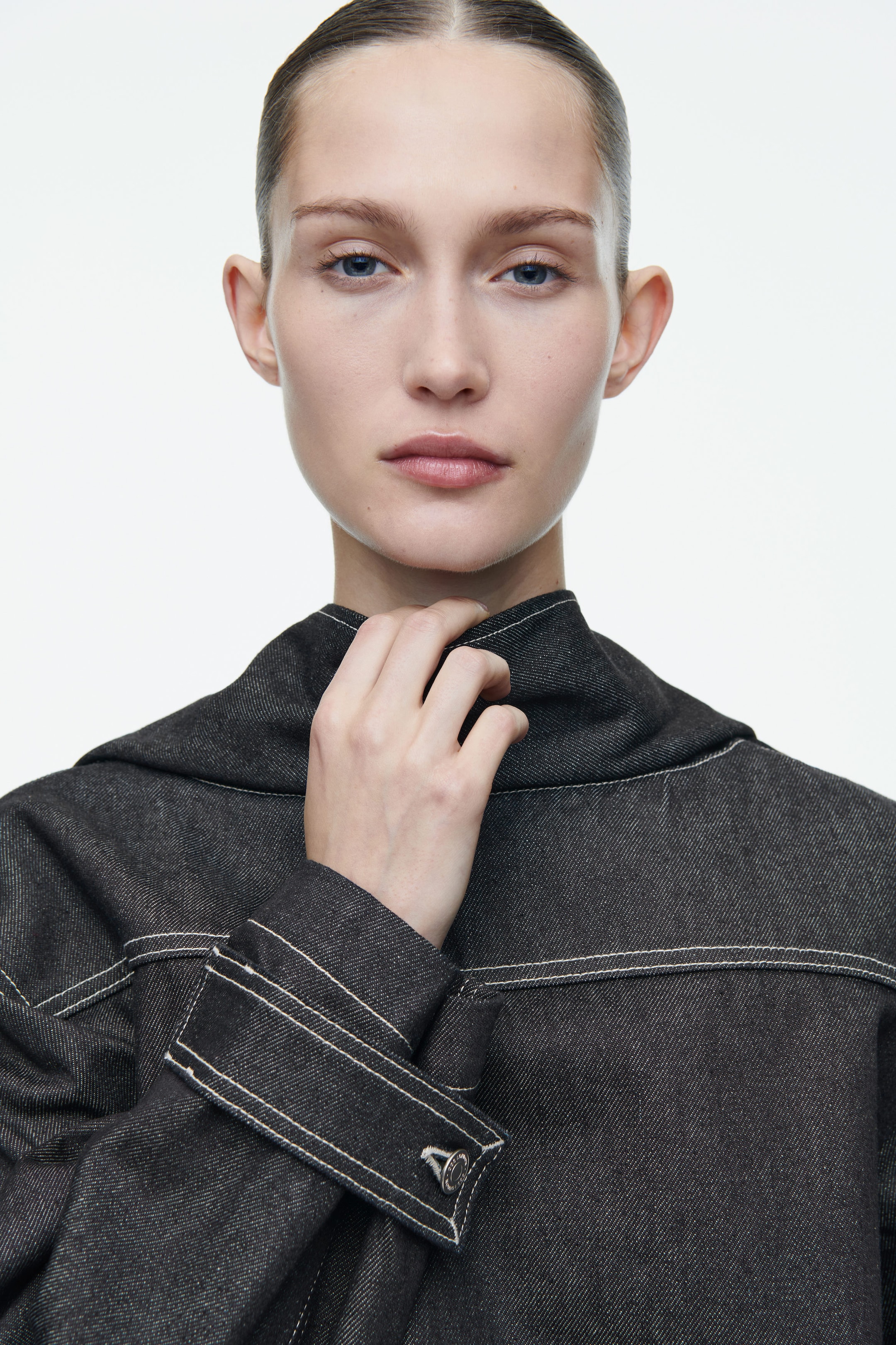 This piece is part of COS Remade – a denim capsule crafted from 20% collected pre-loved cotton pieces by COS, giving fibres renewed purpose. Made from indigo denim, this striking top has an attached scarf that drapes around the neck and is finished with unique tab-cuffed sleeves. Style it with the matching jeans.