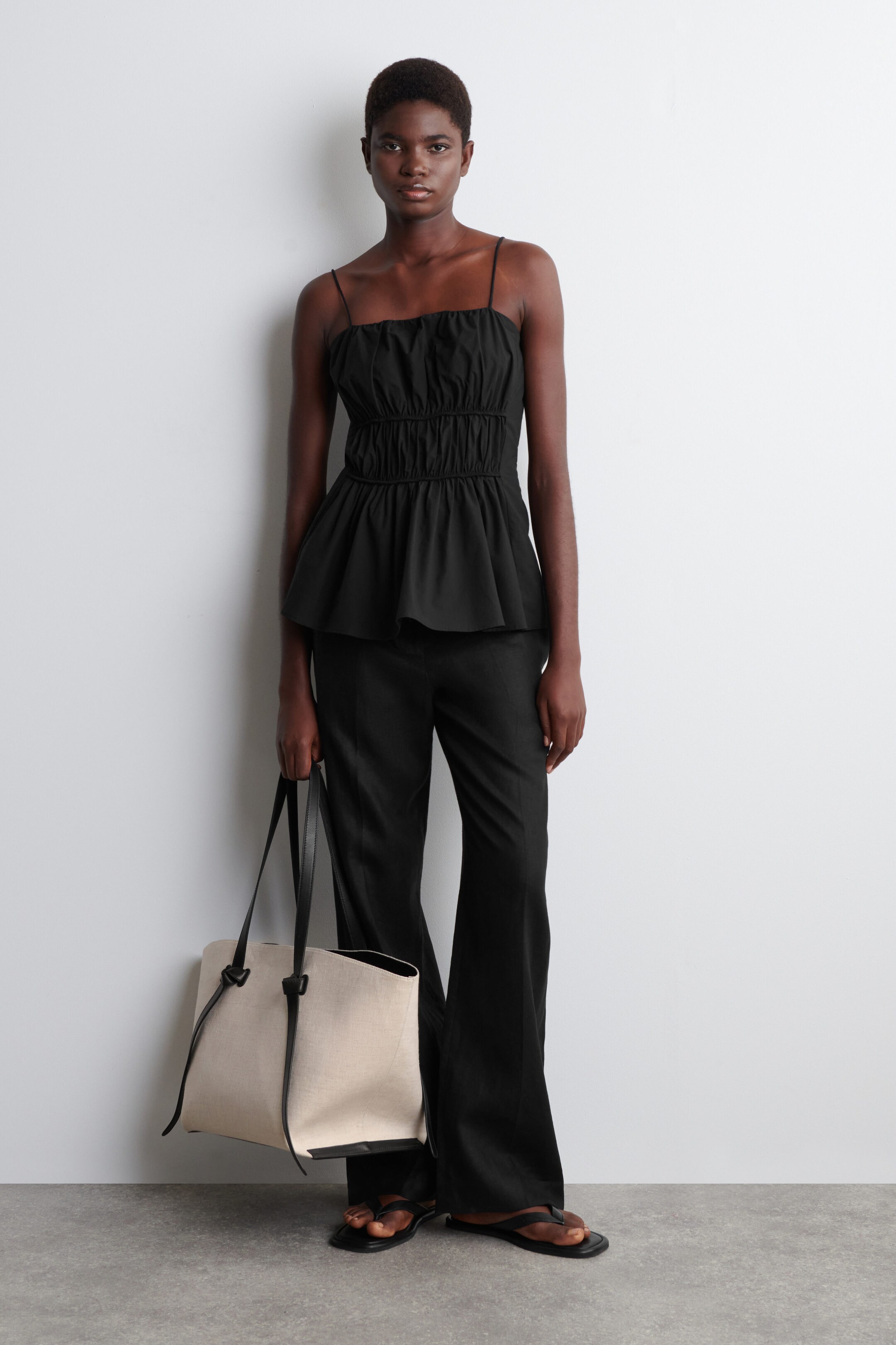 This season, the womenswear team reimagine pared-back silhouettes through ruching techniques. This top is crafted from lightweight Pima cotton and features a gathered bodice, slender straps and an open V-back with tie detailing.
