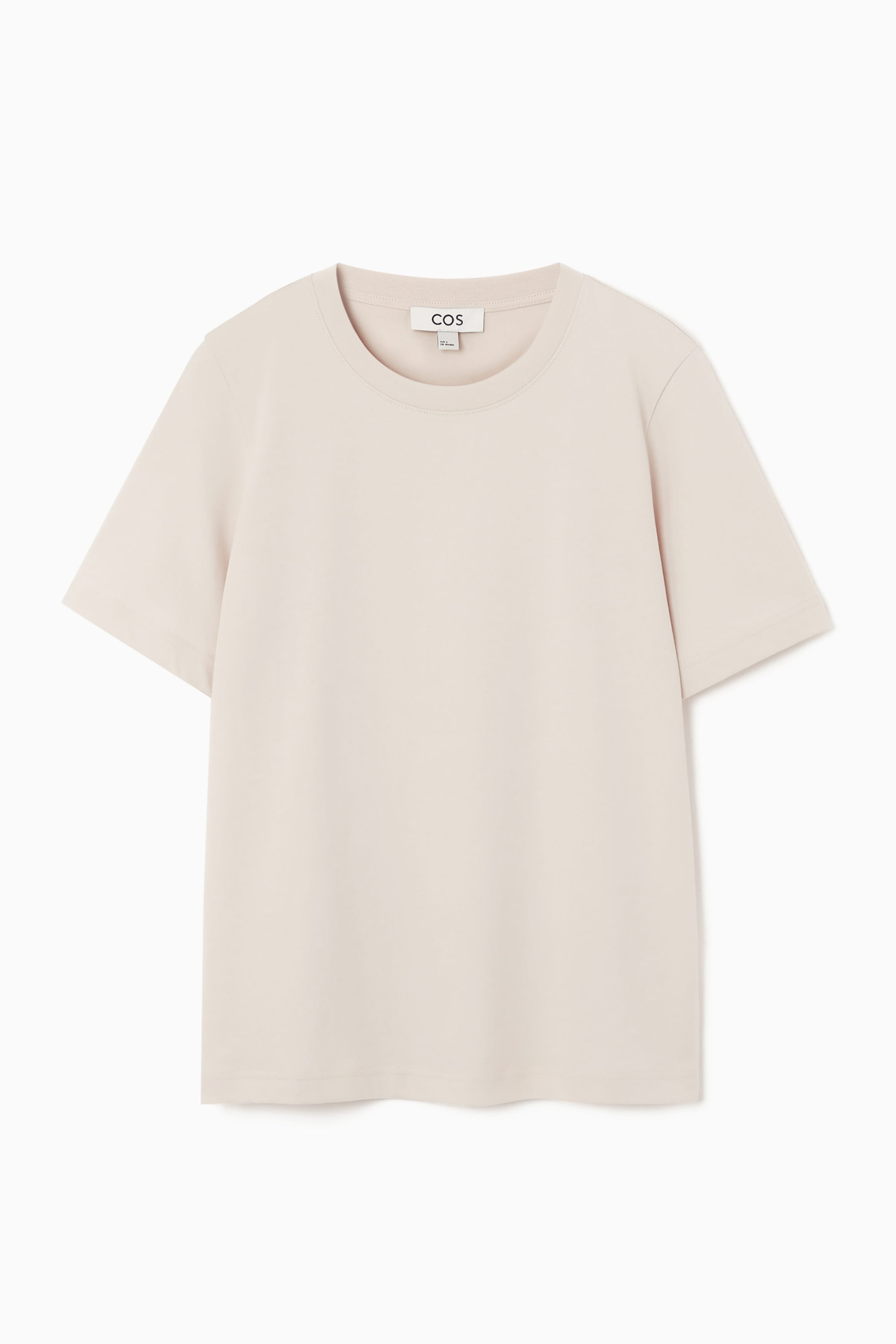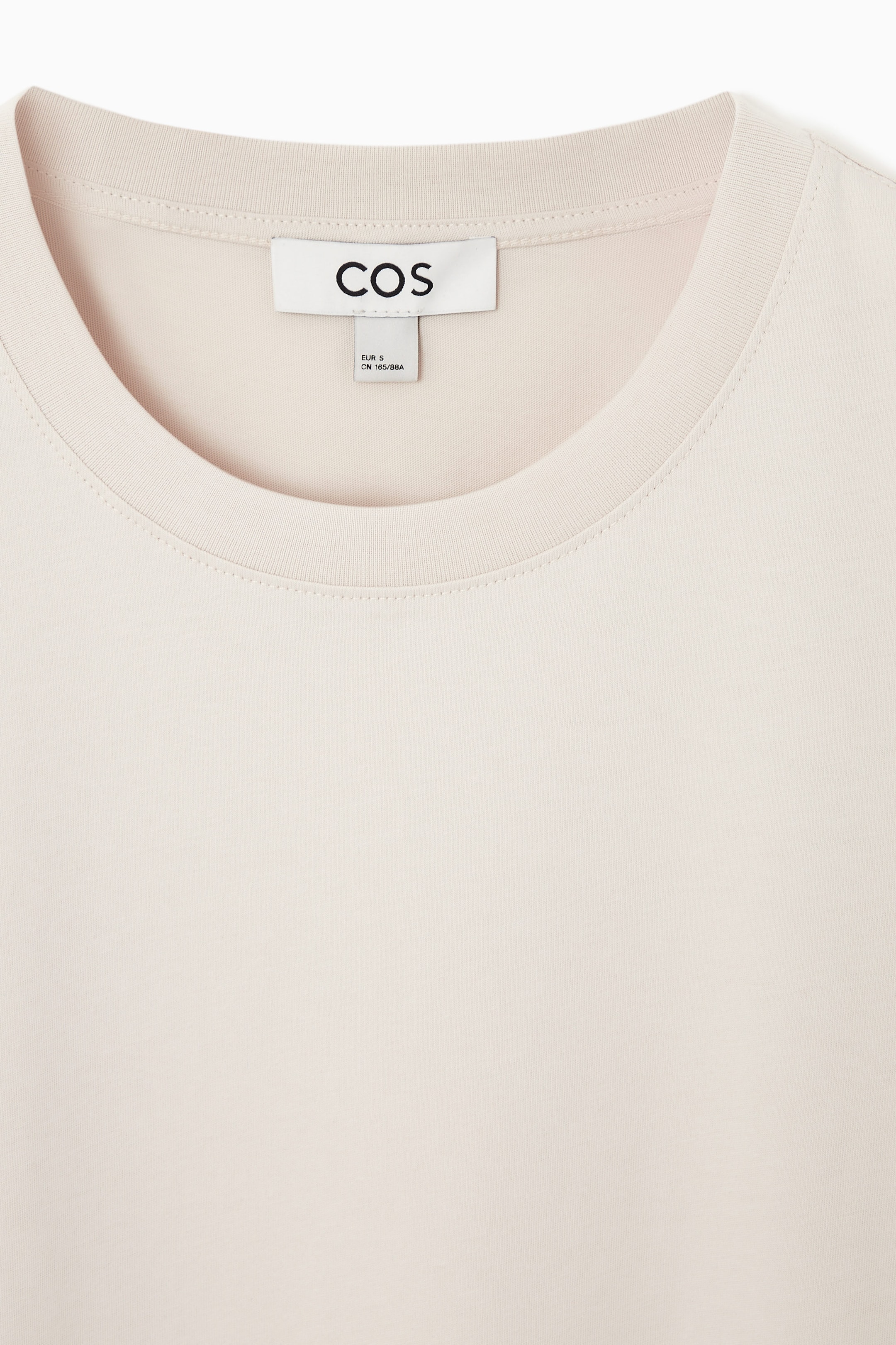 Quality T-shirts have been a cornerstone of the COS collection since day one. An understated essential, this tee is made from cotton with a soft jersey quality and comes in a neutral light-ecru hue. Cut for a straight, regular fit, it has a tightly ribbed round neck and is finished with neat topstitching at the edges.