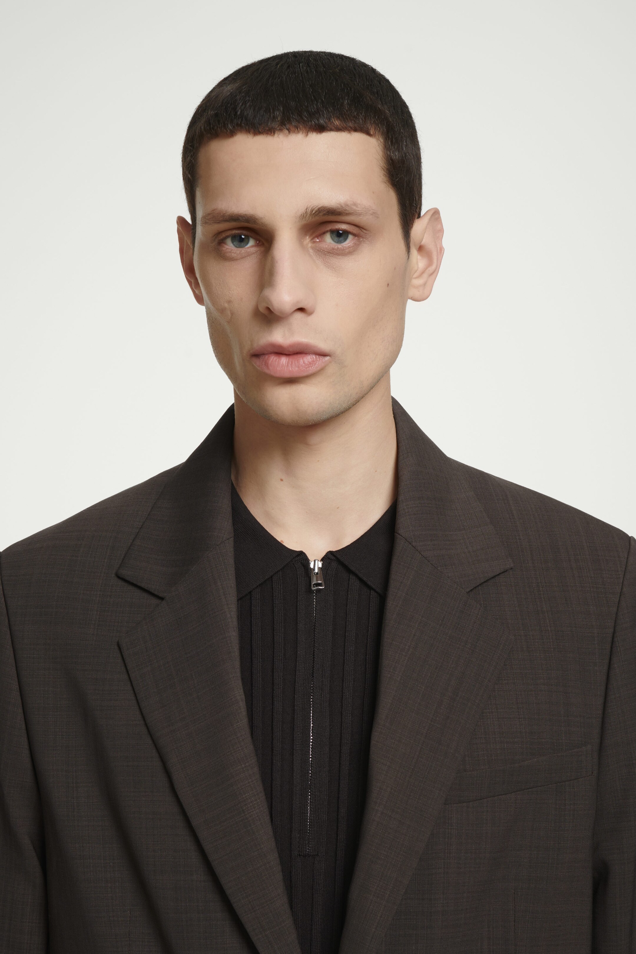 The COS SS25 runway collection builds on the house codes of lasting design and exceptional craftsmanship. This single-breasted blazer is precisely tailored in a relaxed shape with notch lapels, lightly padded shoulders and front flap pockets. It's made from a crisp yet lightweight wool suiting cloth sourced from the esteemed Marzotto mill and finished with a grosgrain hanger loop – a house signature. Style it as a suit with the matching trousers.