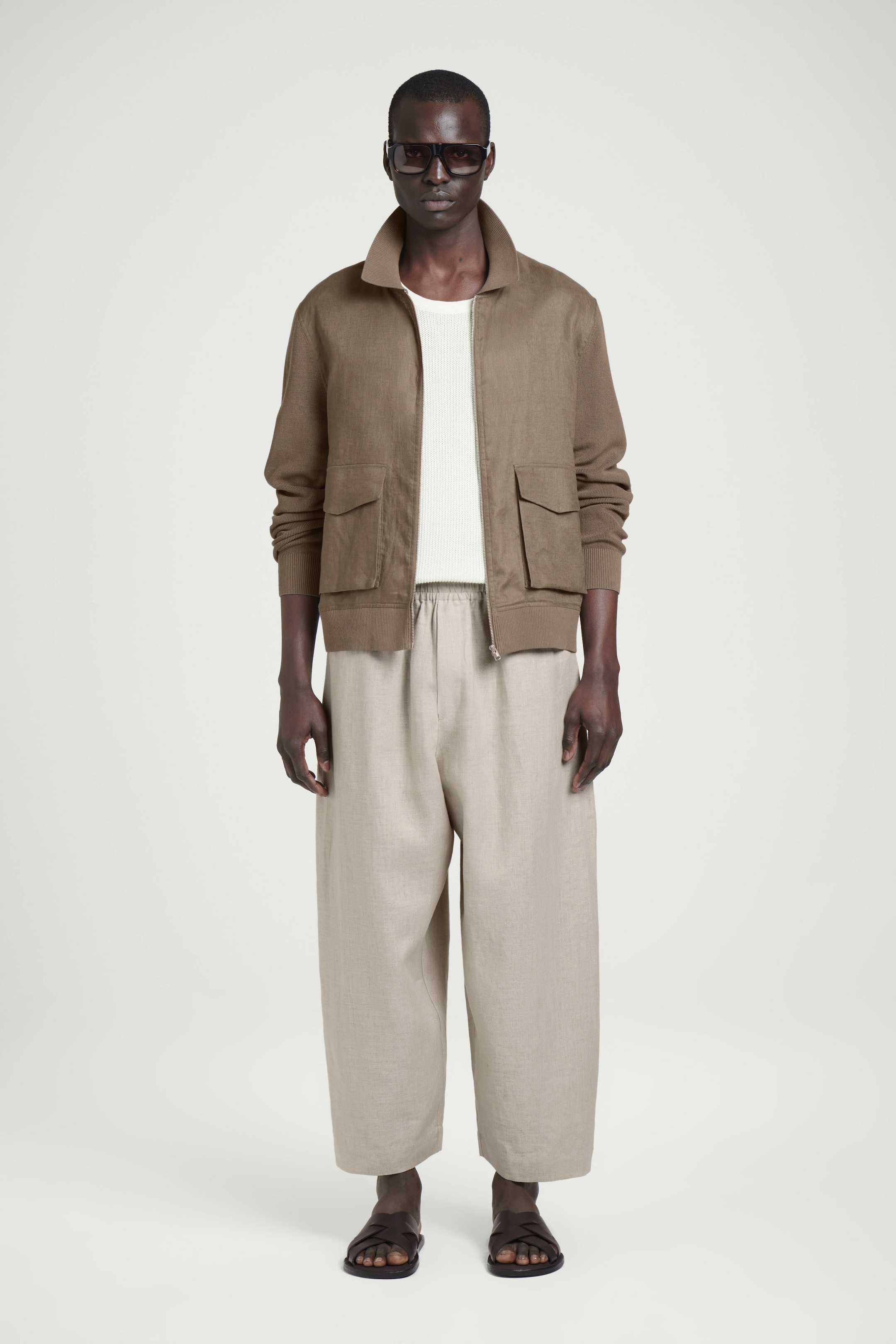 ELASTICATED LINEN WIDE-LEG TROUSERS