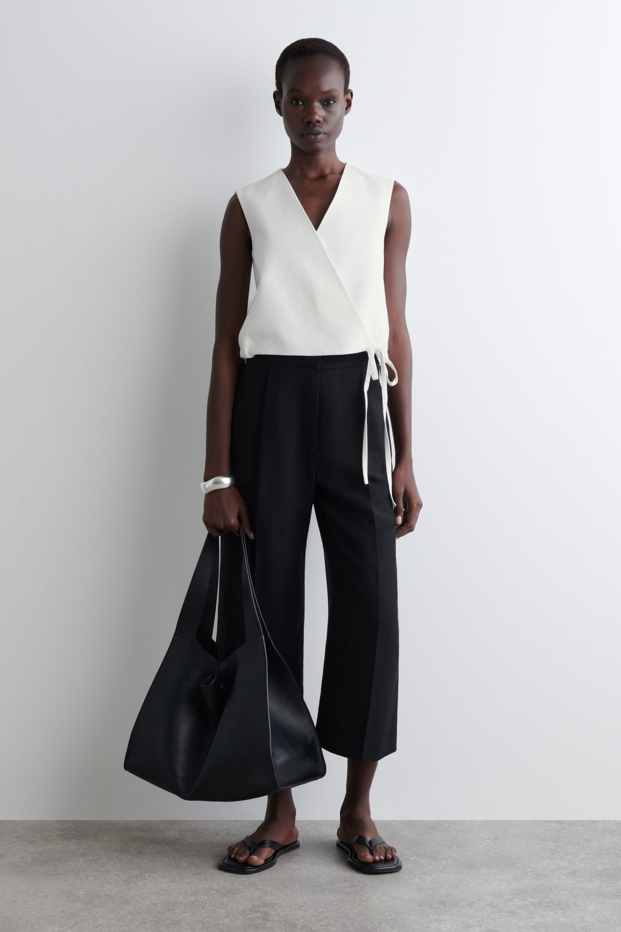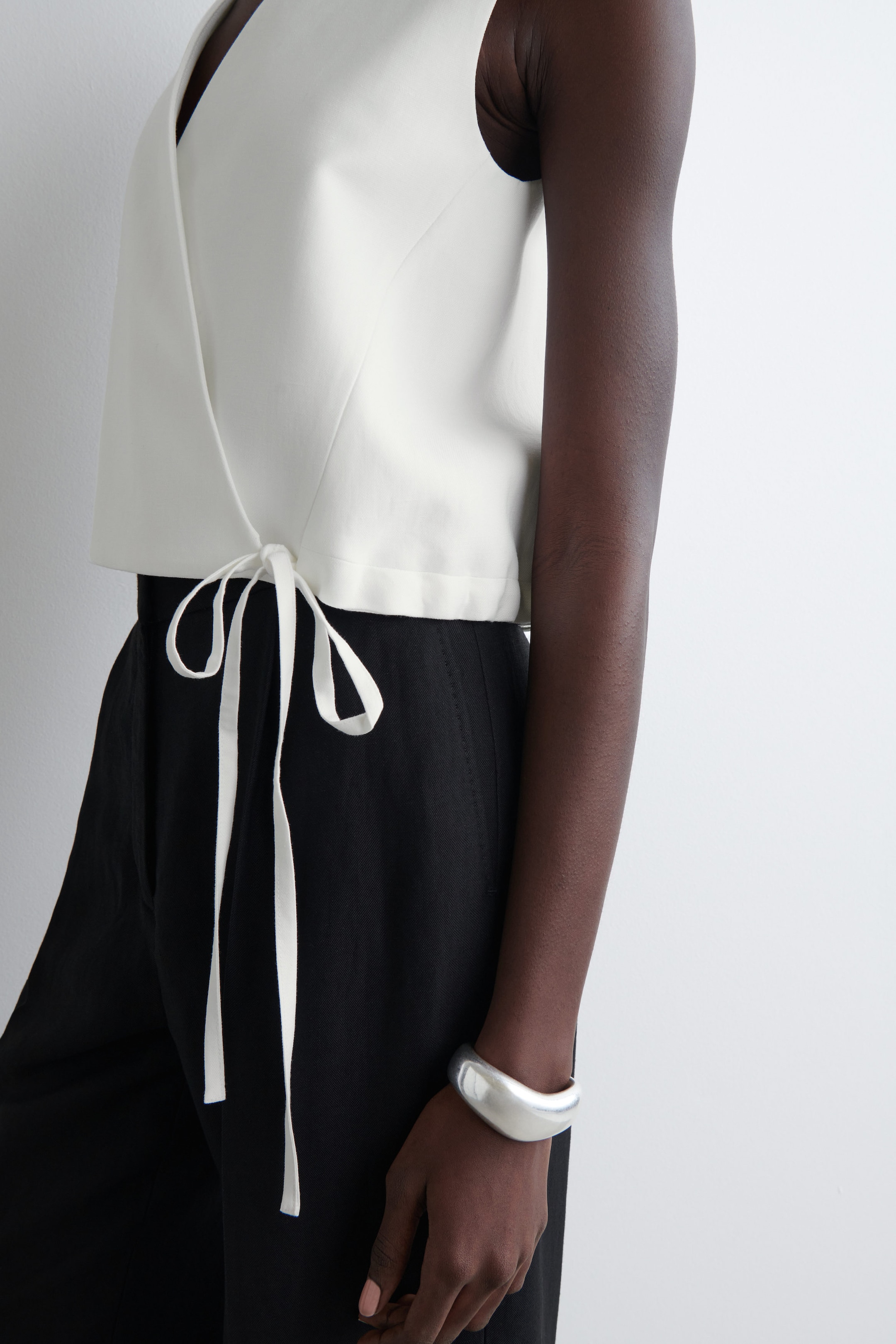TIE-DETAIL LINEN-BLEND WRAP WAISTCOAT