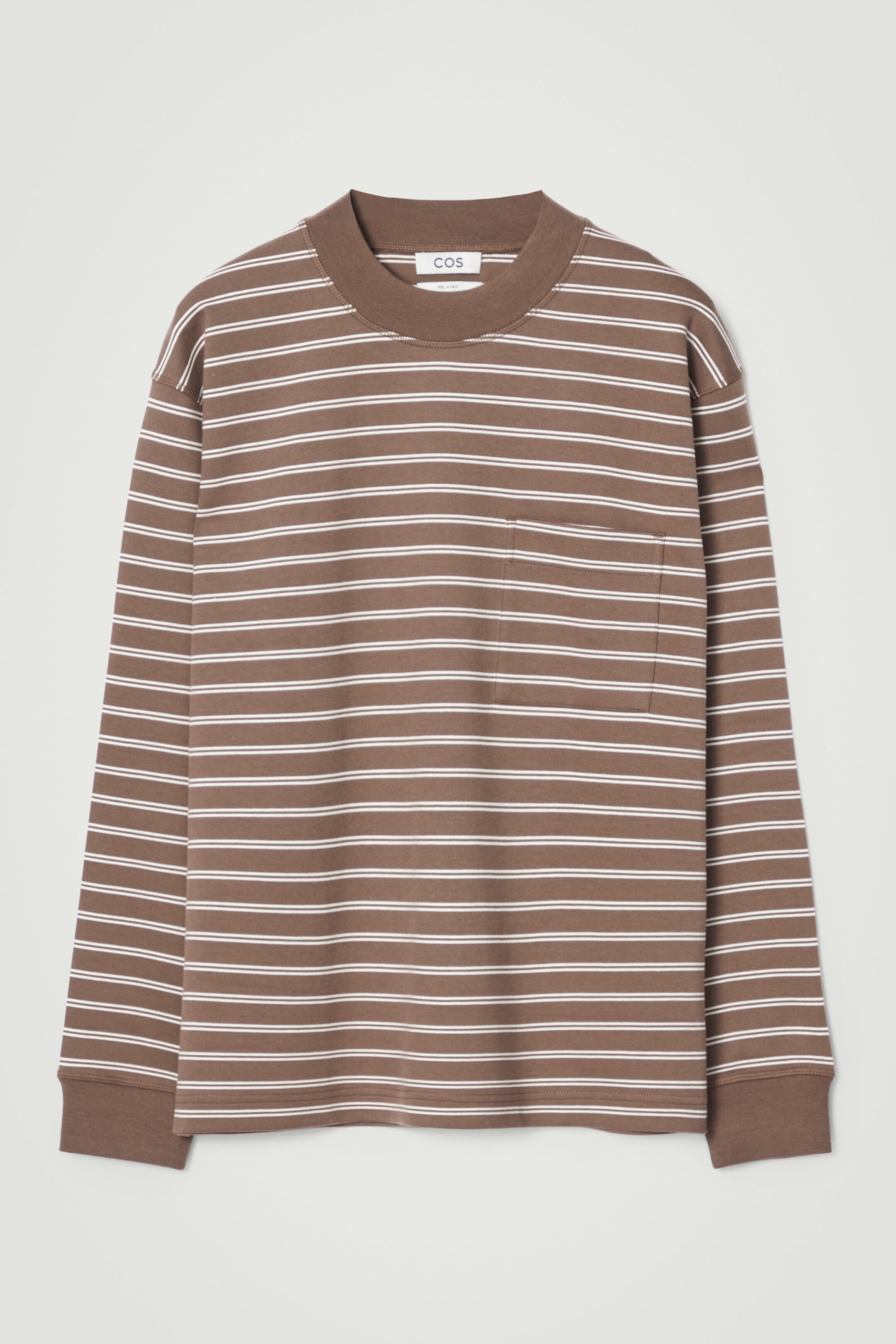 This long-sleeved T-shirt is a laid-back choice for weekends in the city. Made from soft cotton-jersey, it's patterned with brown stripes and has a relaxed fit, ribbed mock neck and a patch pocket at the chest.