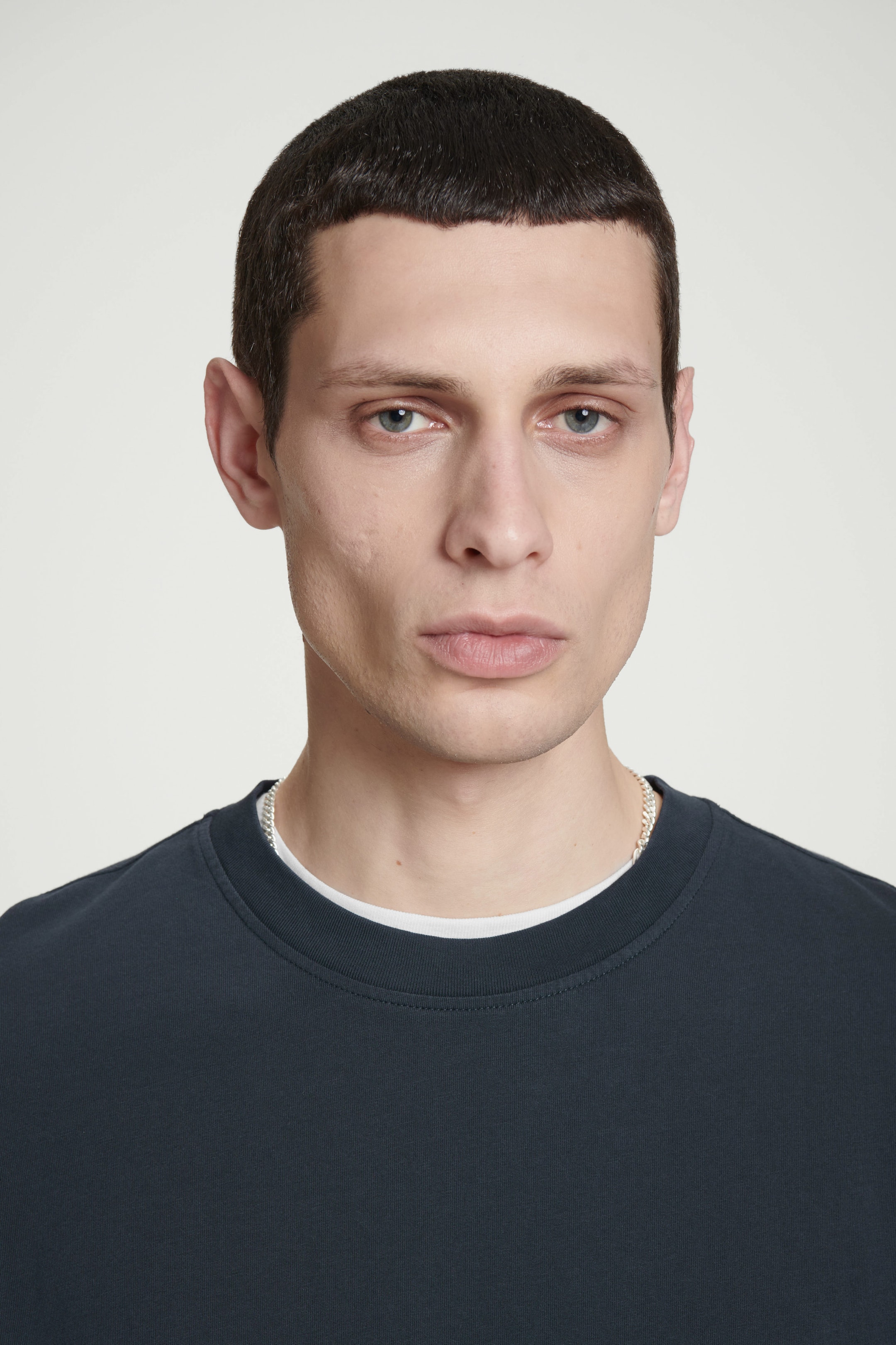 Oversized silhouettes are a COS signature and our design team tapped into that expertise when creating our staple washed tee. Cut for an easy-going fit, this washed navy one is crafted from the softest 180gsm organic-cotton jersey that's gentle on the skin and will retain its shape, even after plenty of washes and wears.