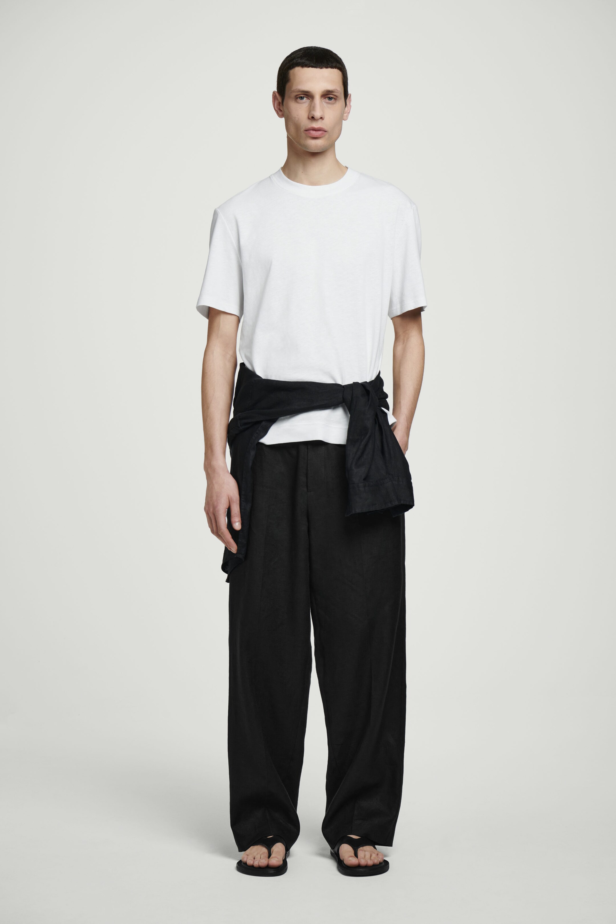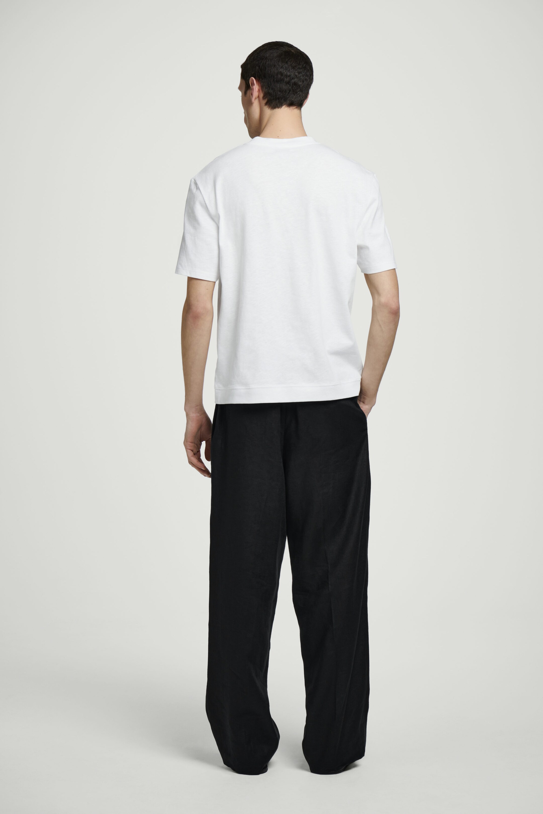• ELASTICATED LINEN STRAIGHT-LEG TROUSERS