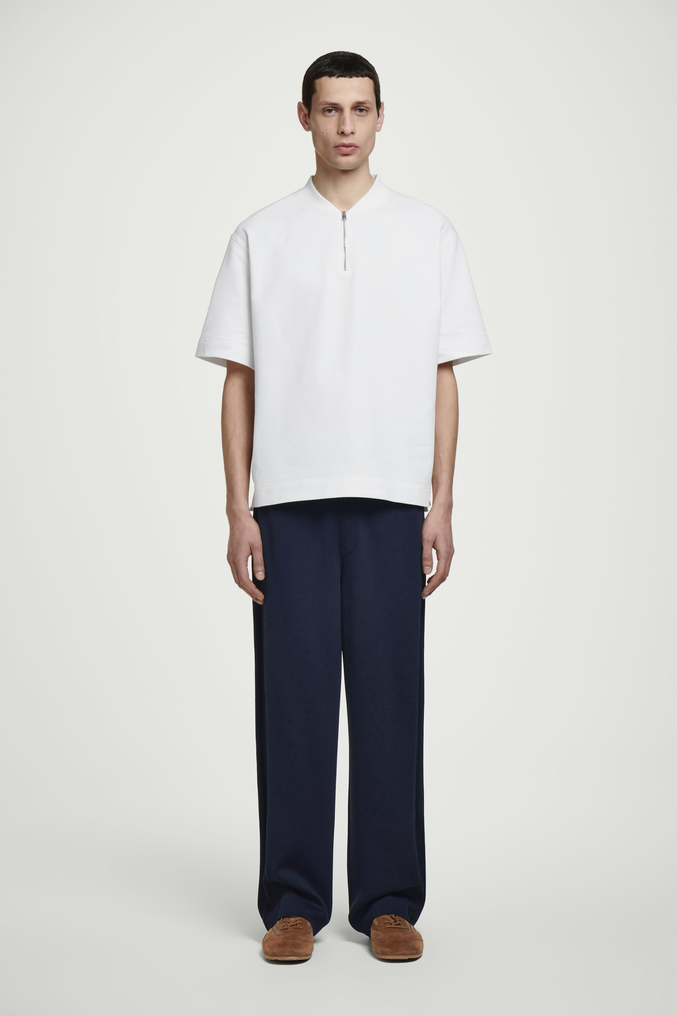 This laid-back T-shirt borrows from classic sportswear. Cut in a relaxed shape, it's made from soft cotton-jersey and features a ribbed crew neck, silver-tone half-zip and side slits.