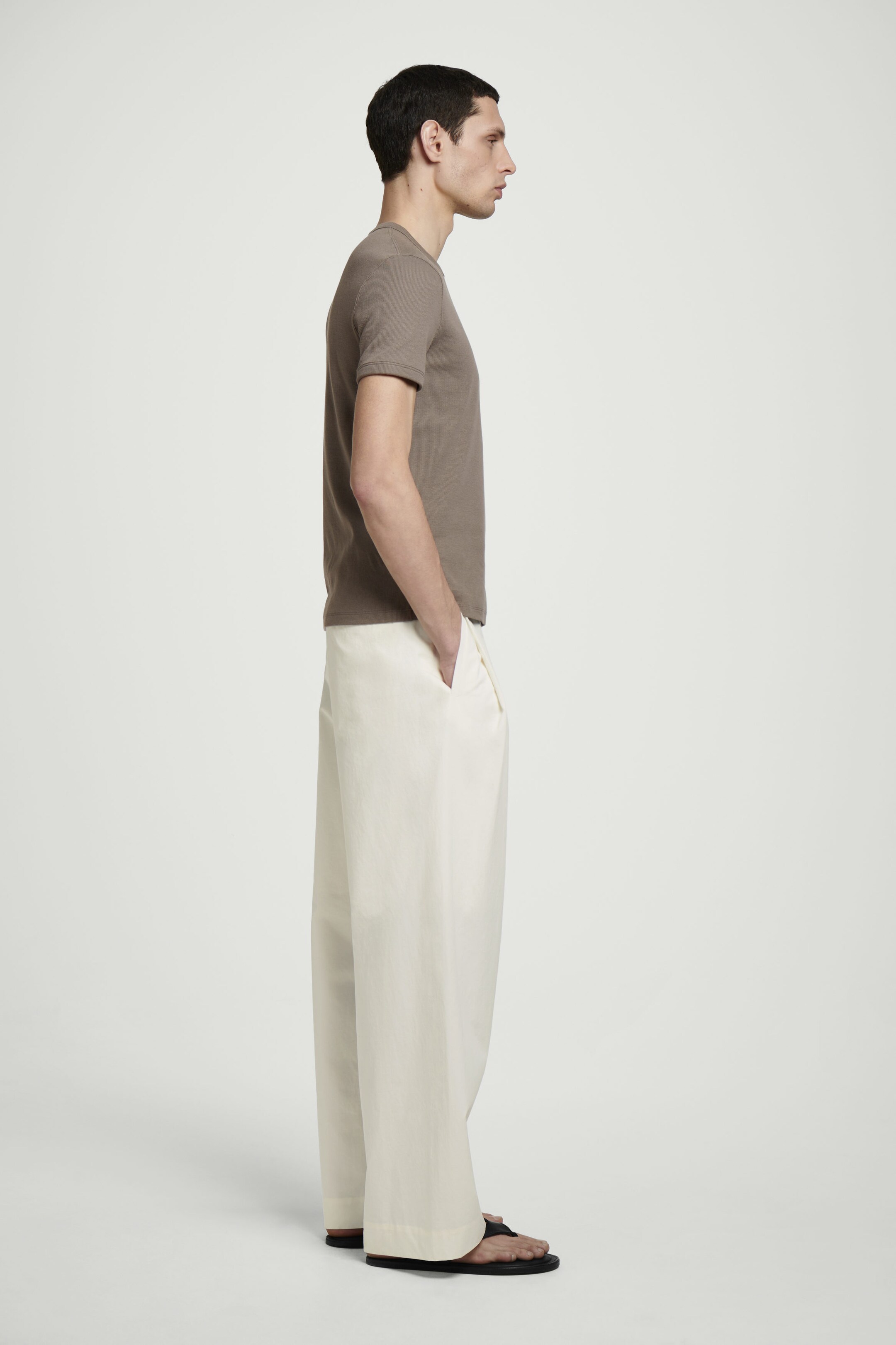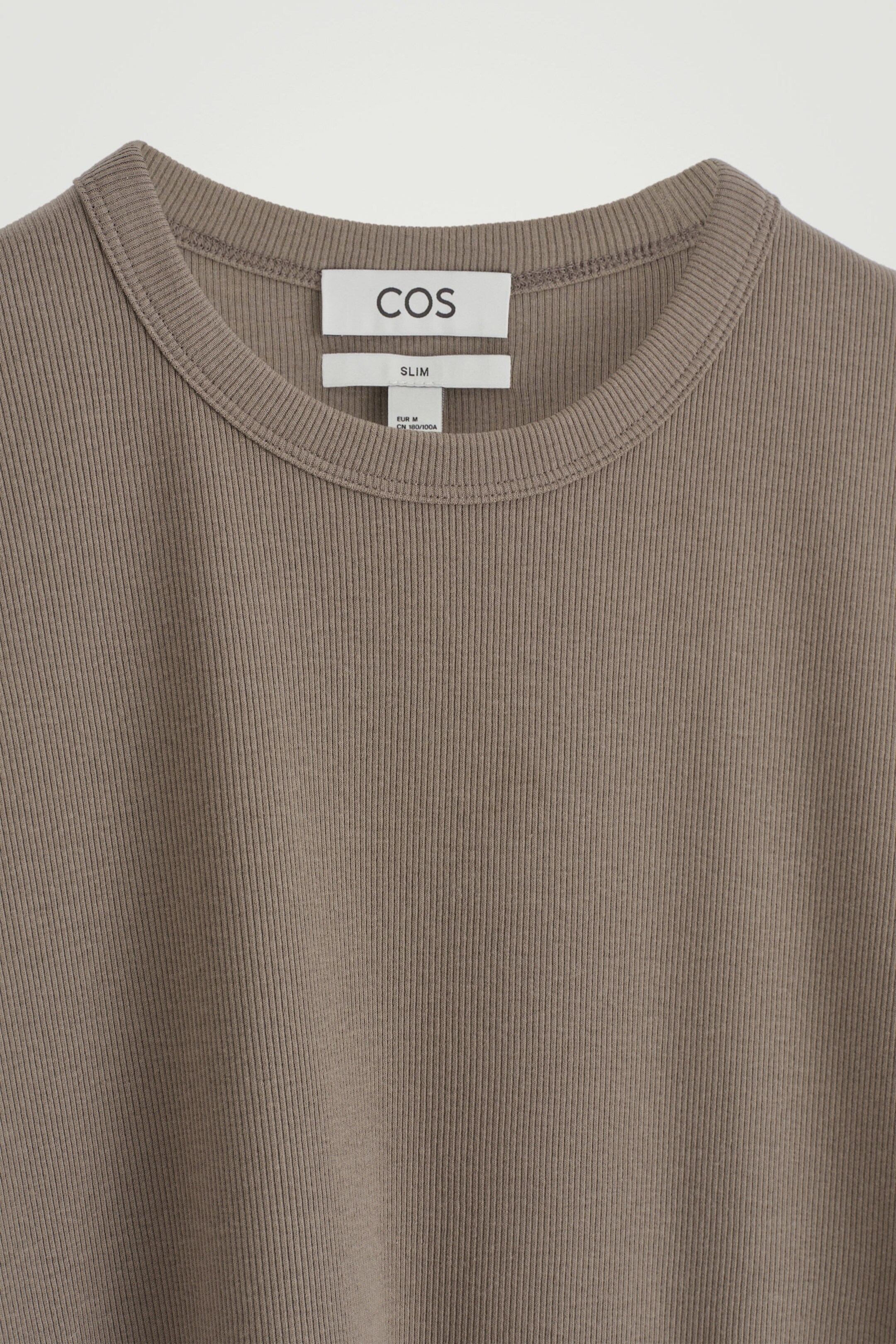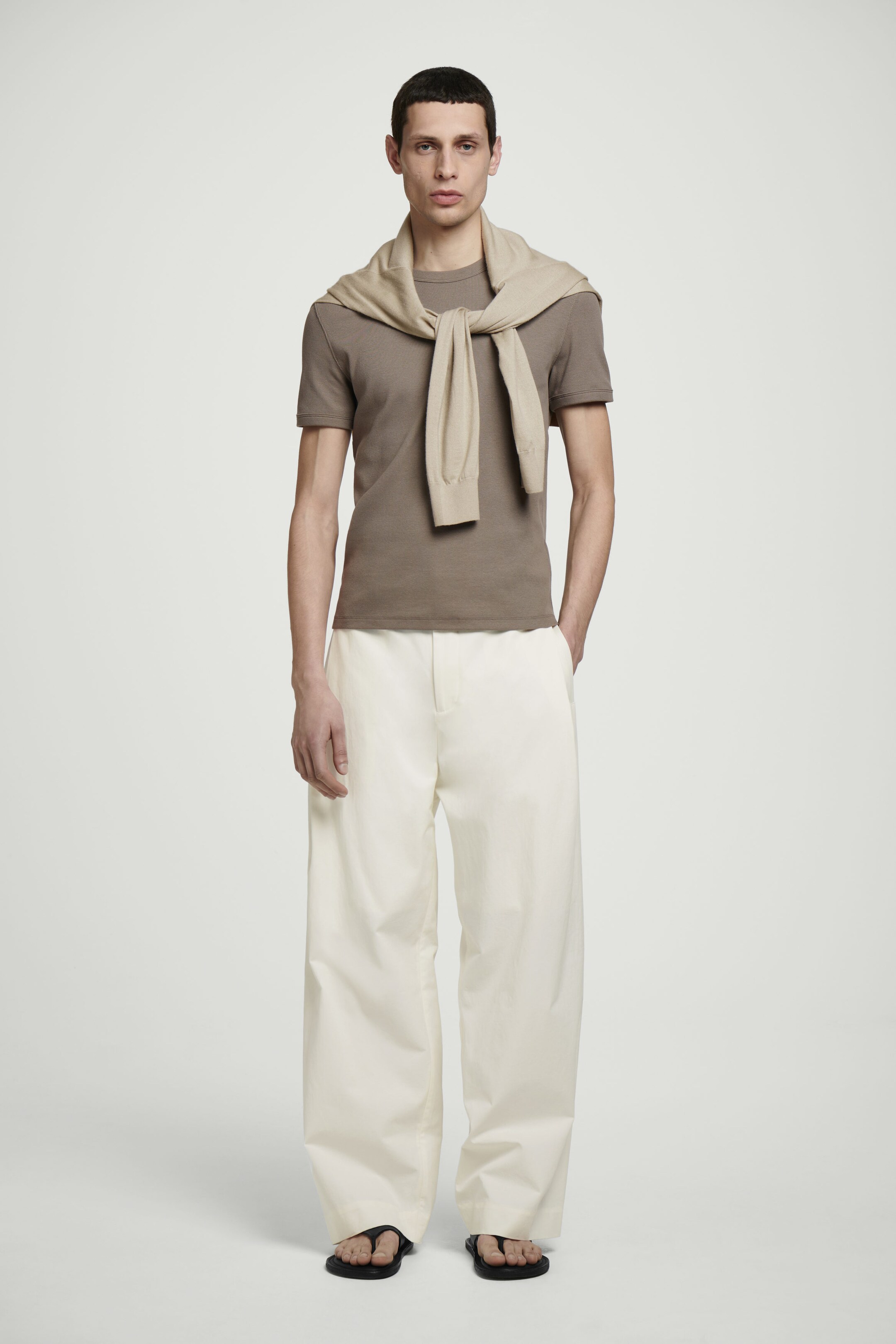 This season, the COS menswear team introduce a more streamlined cut to our collection of T-shirts. It's crafted from organic- and recycled cotton-blend jersey with a hint of stretch and finely ribbed for a close fit at the chest and arms. The slim shape will nicely contrast an oversized shirt or blazer.
