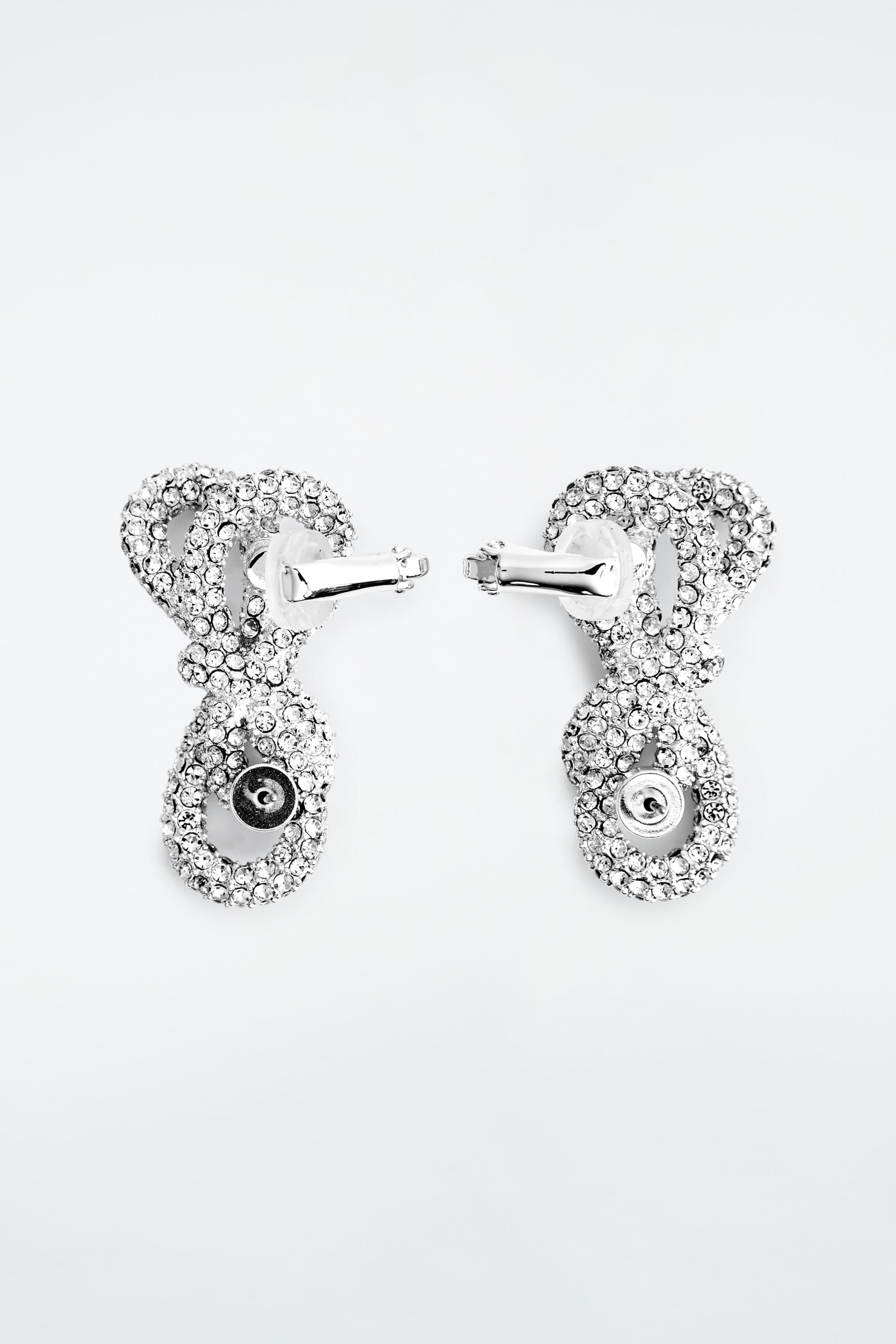 These artfully refined earrings are crafted from silver-plated recycled brass that's knotted into a sculptural double bow. They're embellished with light-catching crystals and designed to climb up the lobe for an impactful look.