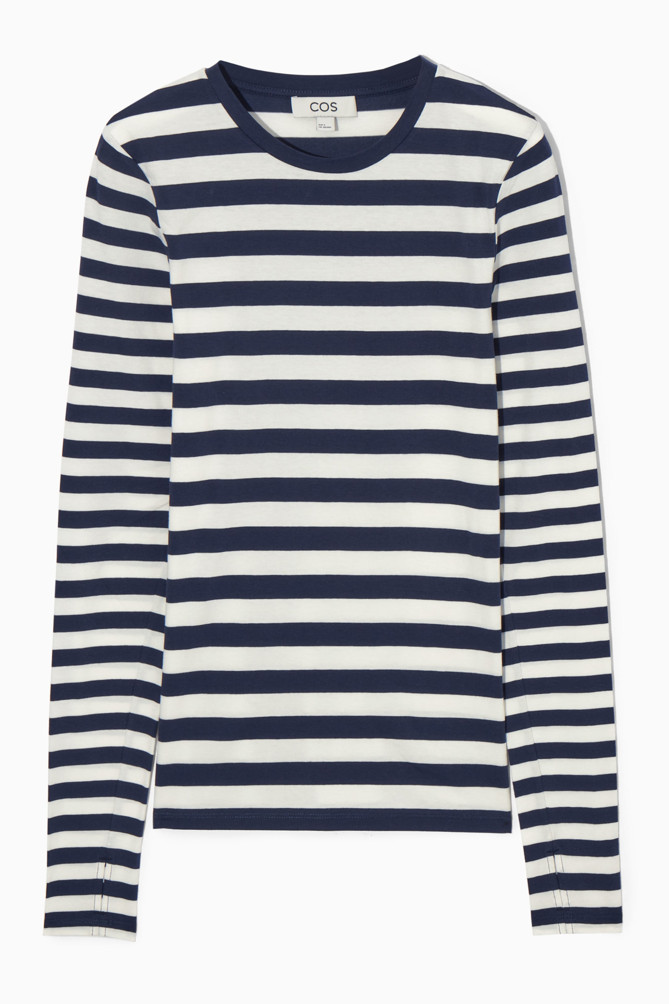 This long-sleeved top is designed as the ideal layering piece. Shaped for a close fit, it's crafted from breathable cotton with a touch of stretch and decorated with Breton-inspired stripes. The thumbhole cuffs provide extra comfort on chillier days.