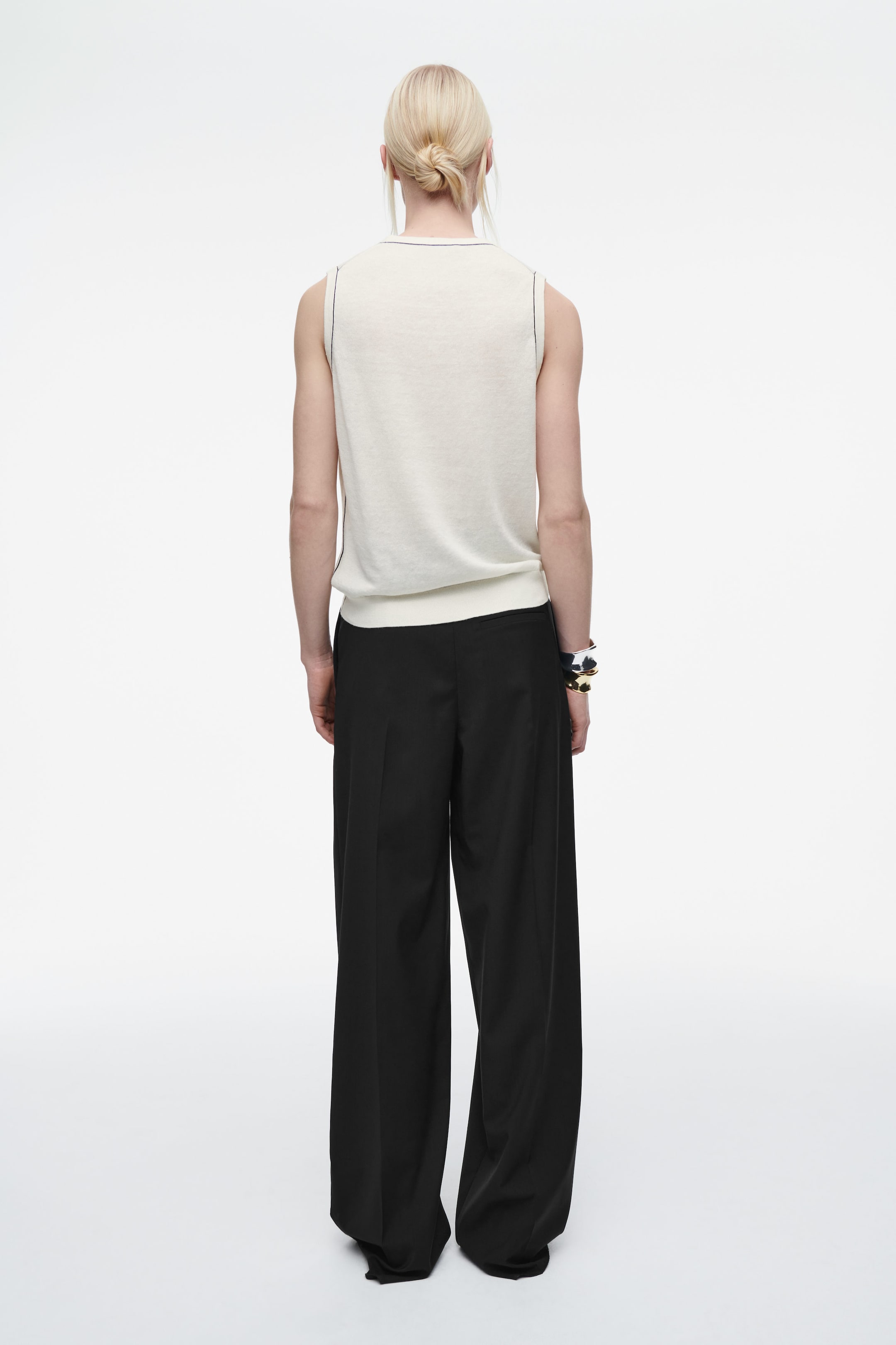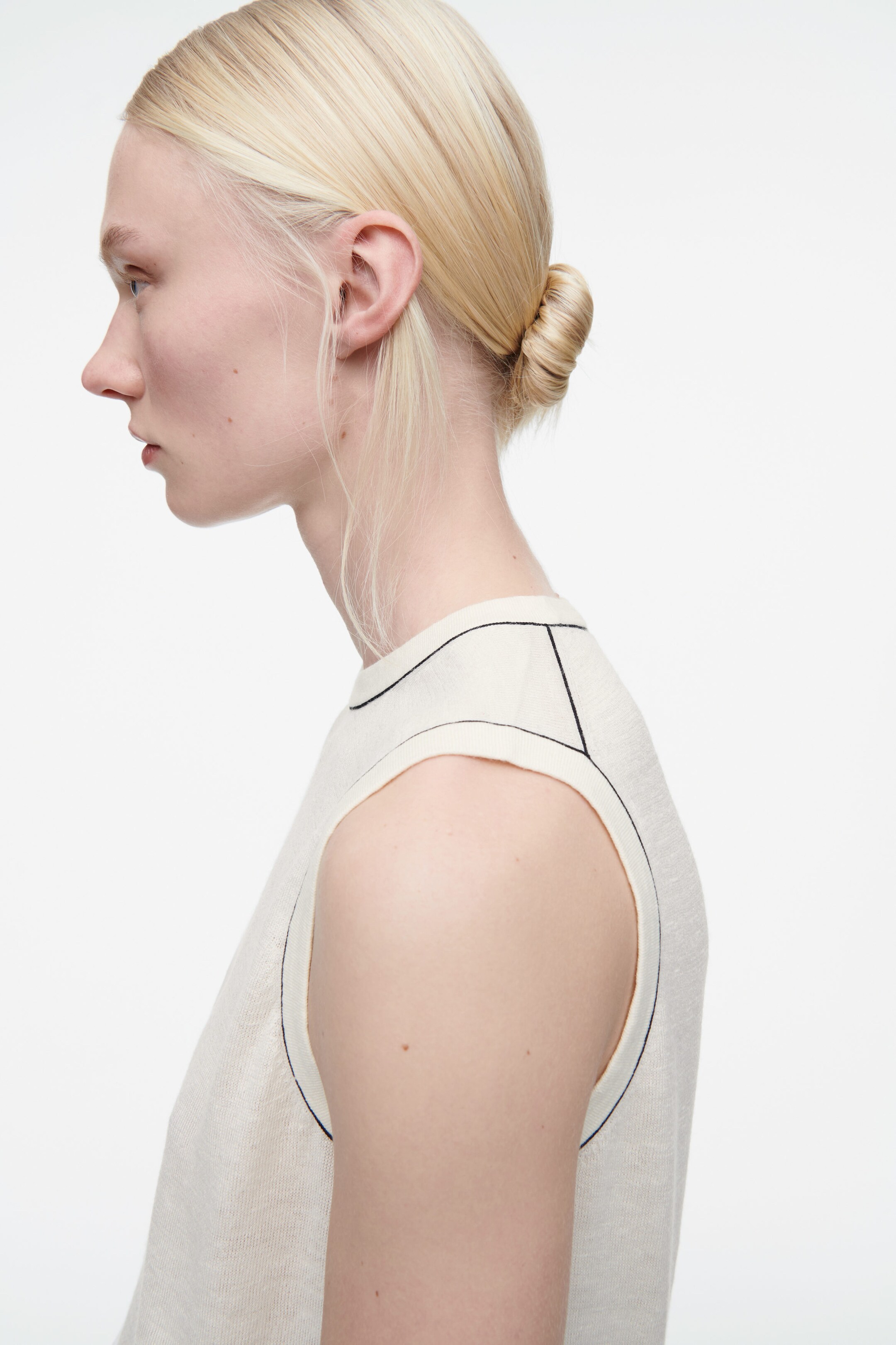 Premium wardrobe staples are a tenet of the COS collection. This off-white tank top is knitted from a premium blend of merino wool and linen, and features a crew neckline, ribbed hem and contrasting black trims. Style it with the matching cardigan.