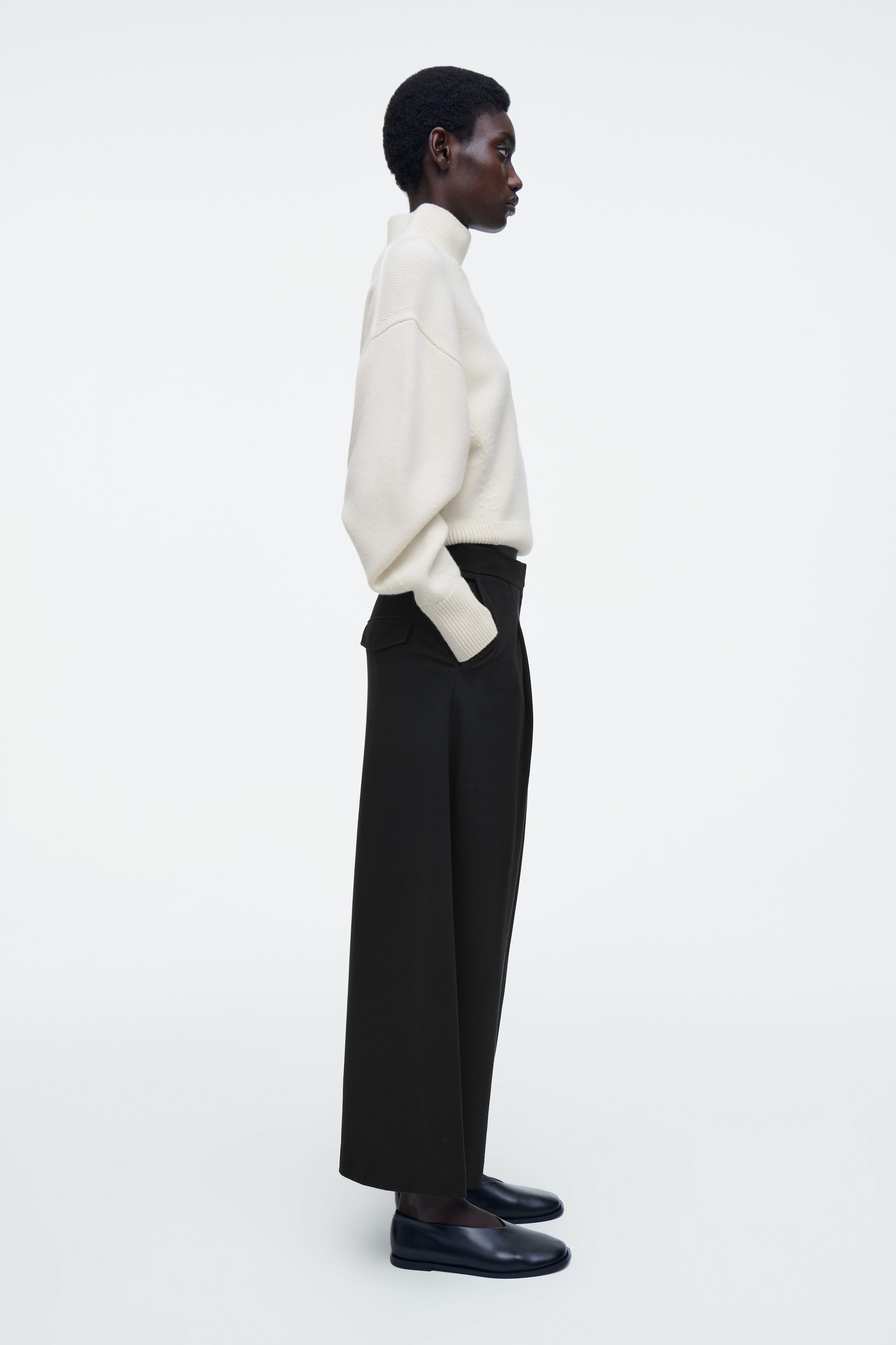 Cut to exaggerated proportions, these high-waisted trousers are shaped with wide legs and cropped hems. They're tailored from lightweight ECOVERO™ Viscose in an enduring navy tone and feature a clean waistband, pleated detailing and several pockets. Style it with the matching polo shirt.