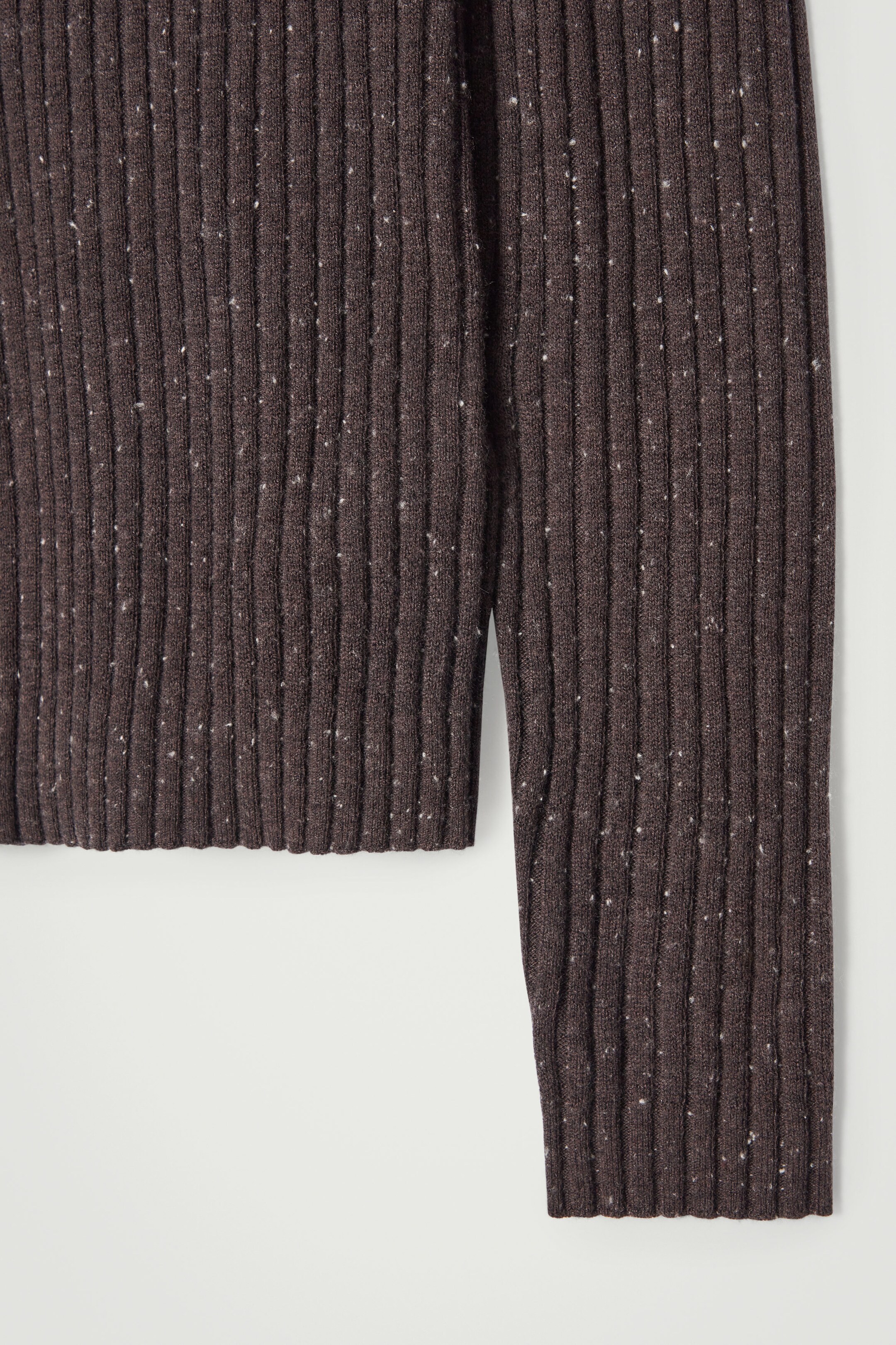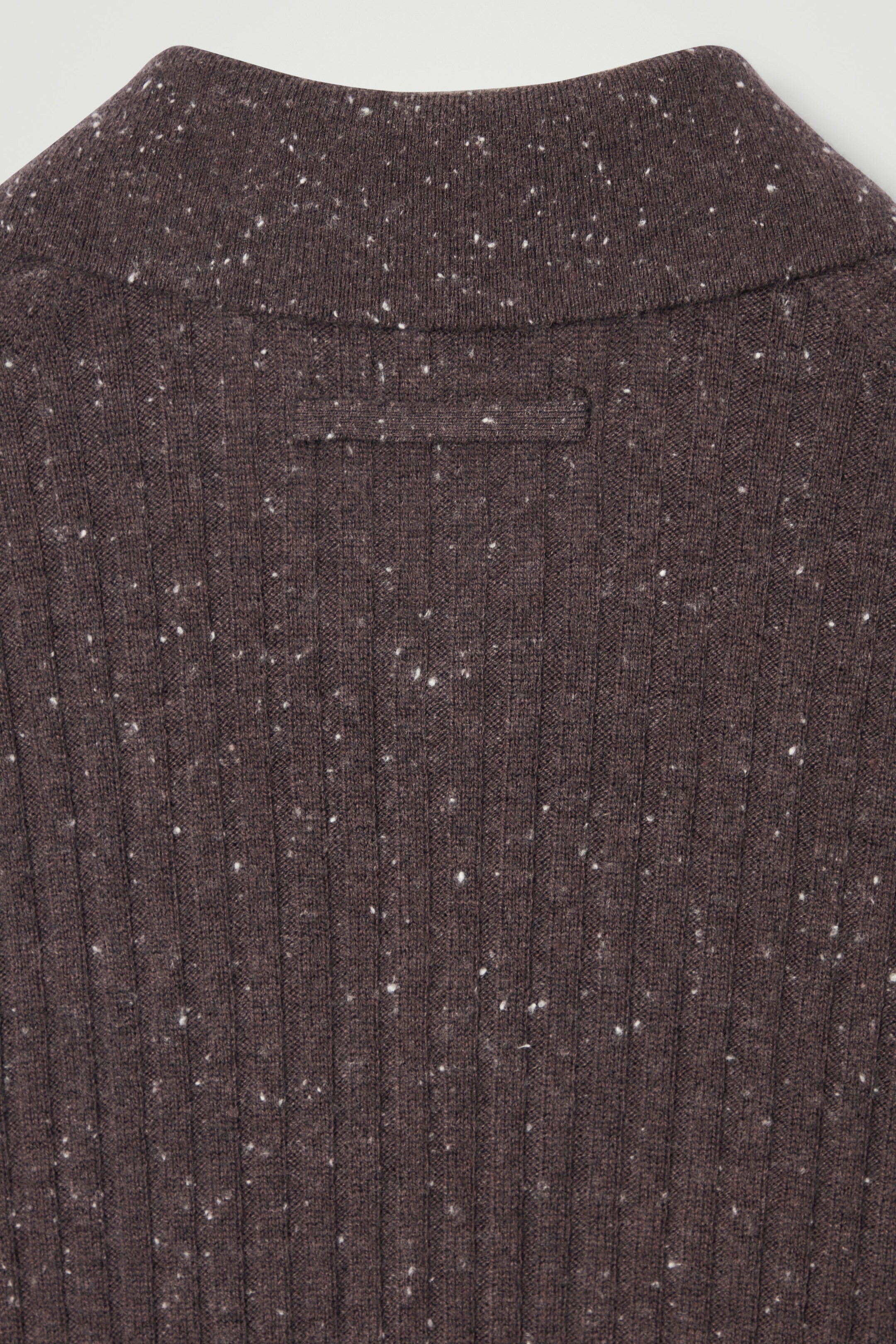 This piece is rib-knitted from RWS-certified wool that's luxuriously soft and rich in texture. The knit is peppered with flecks of sand-toned cashmere that offset the chocolate hue.