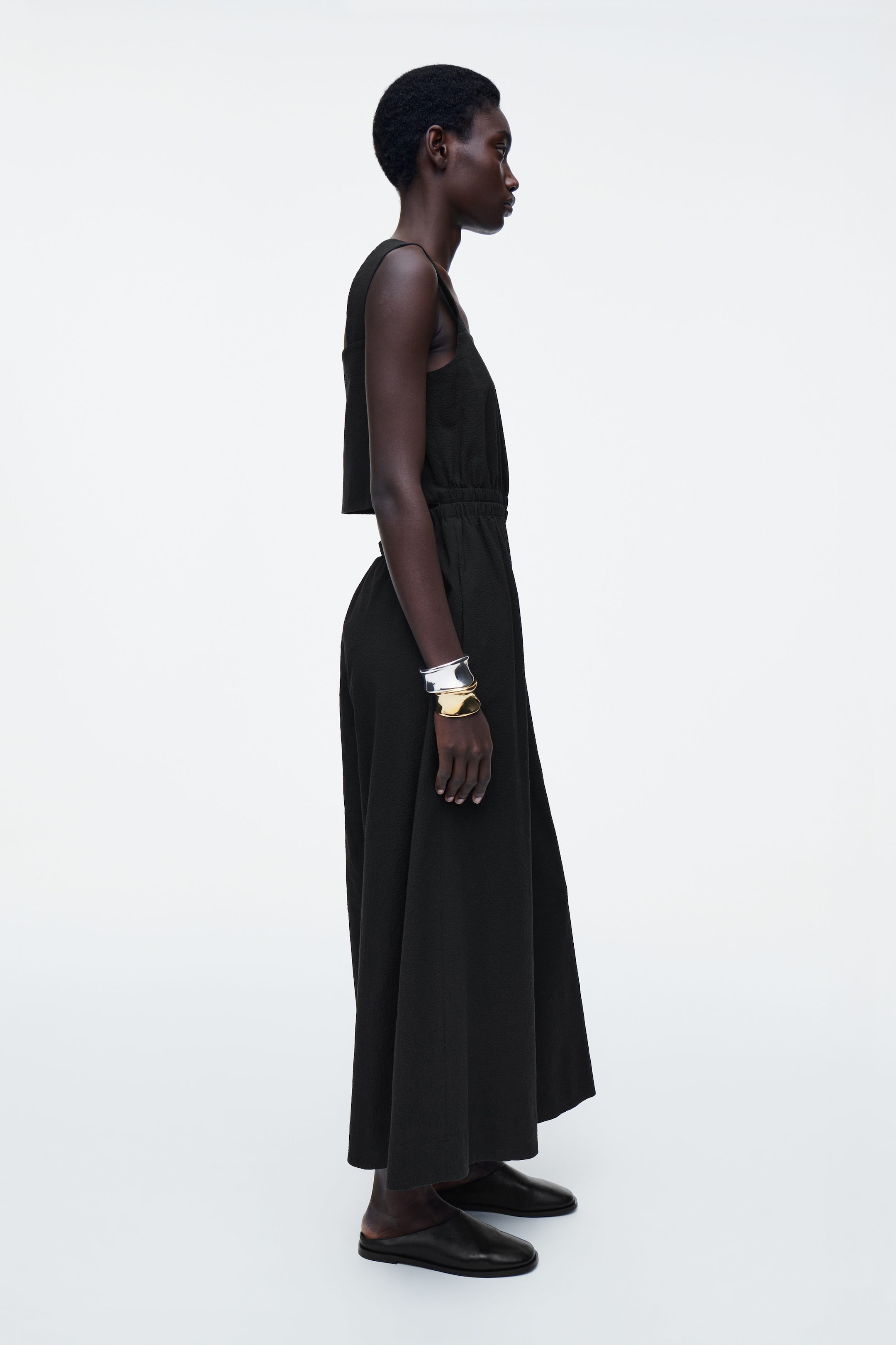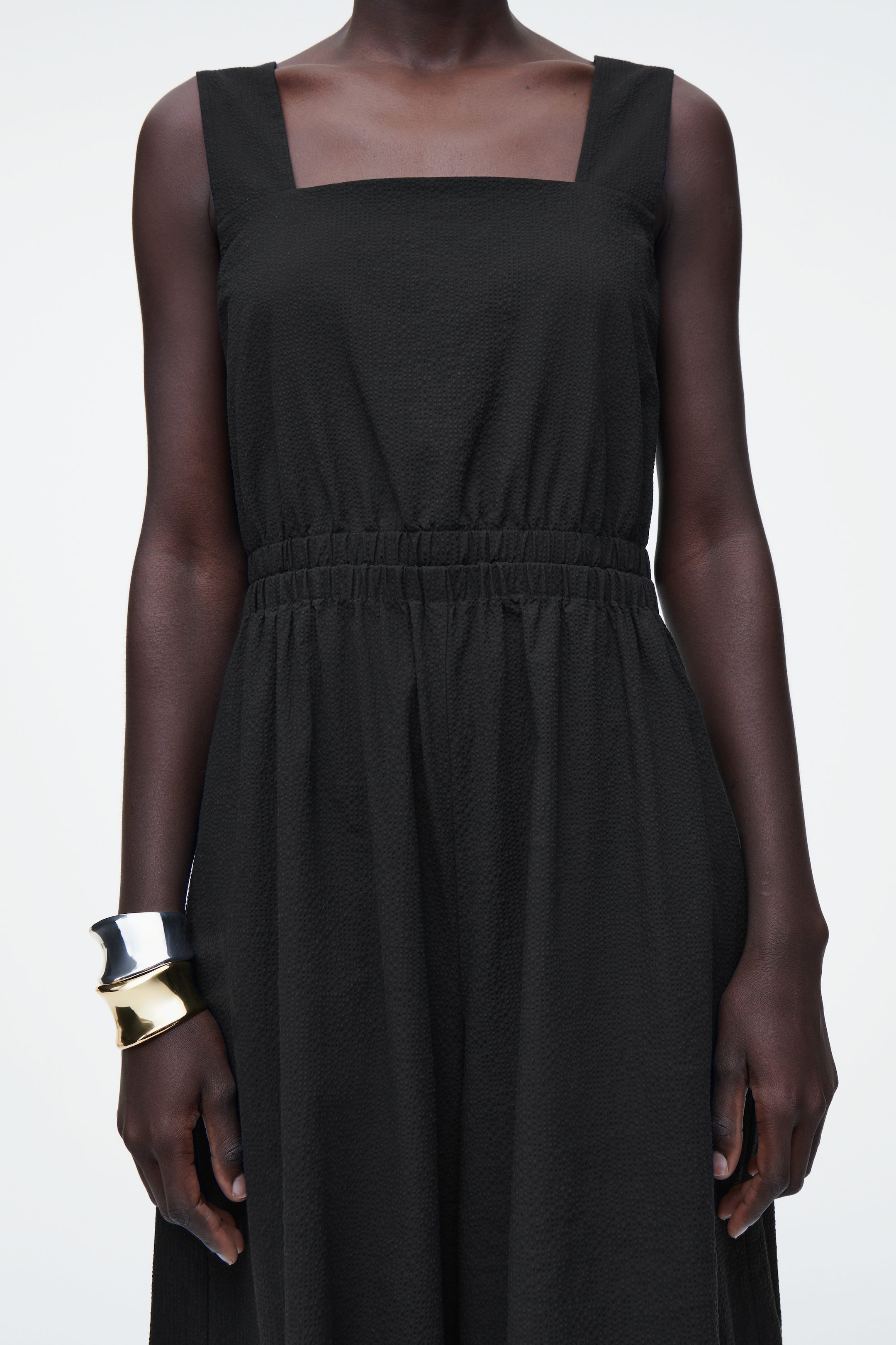 This effortless jumpsuit lends itself to laid-back weekends. Crafted from textured cotton-blend seersucker, it's cut in a voluminous wide-leg shape and has a gathered waist and open back. Style it over a T-shirt for a layered look.
