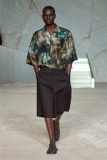 The show explored interpretations of the resort shirt, shaped to a relaxed silhouette and finely crafted in silk in a dark-grey hue or rendered in a unique marbled print inspired by Renaissance paintings.
