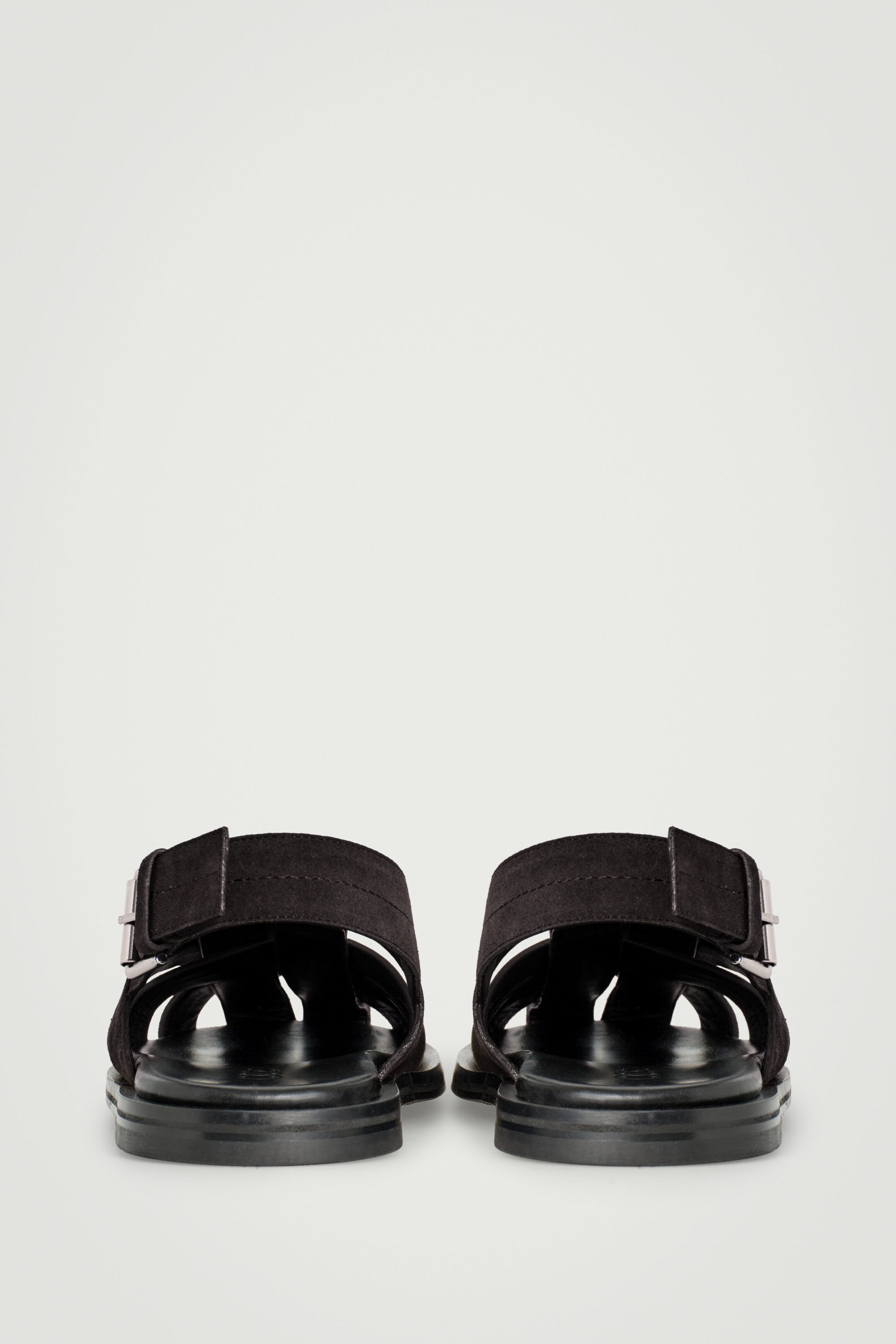 The COS SS25 runway collection builds on the house codes of lasting design and exceptional craftsmanship. A polished take on the classic fisherman sandal, this pair is made from premium suede chosen for its rich texture and supple hand feel. They're tanned an enduring chocolate tone and feature wide crossover straps and stacked leather soles.