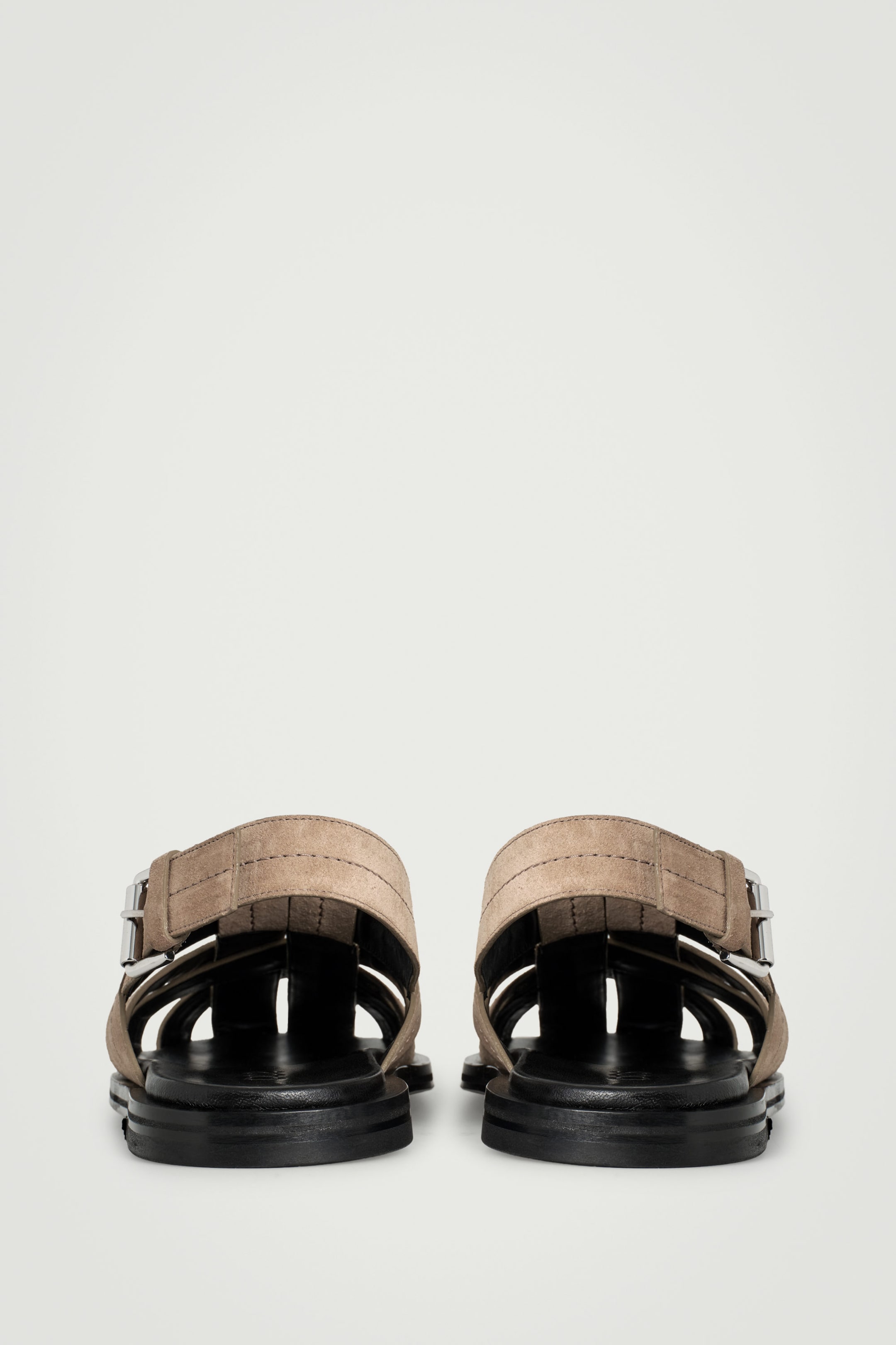 The COS SS25 runway collection builds on the house codes of lasting design and exceptional craftsmanship. A polished take on the classic fisherman sandal, this pair is made from premium suede chosen for its rich texture and supple hand feel. They're tanned an enduring sand tone and feature wide crossover straps and stacked leather soles.