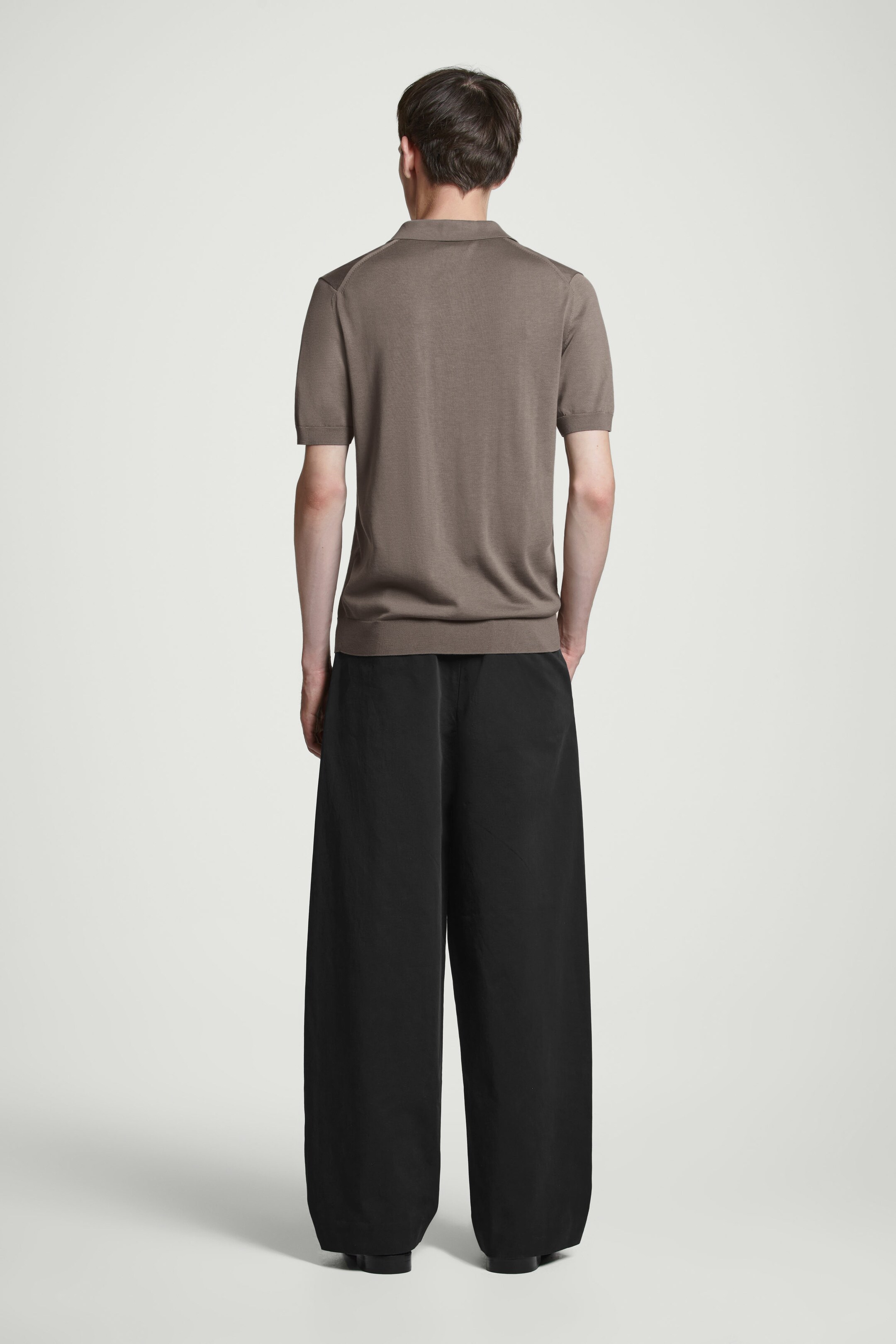 A polo shirt is a versatile piece to have to hand, since it works for day but is smart enough to wear with tailoring. Knitted from a blend of Mulberry silk and cotton, this mole one has a spread collar, buttoned half-placket and ribbed trims.