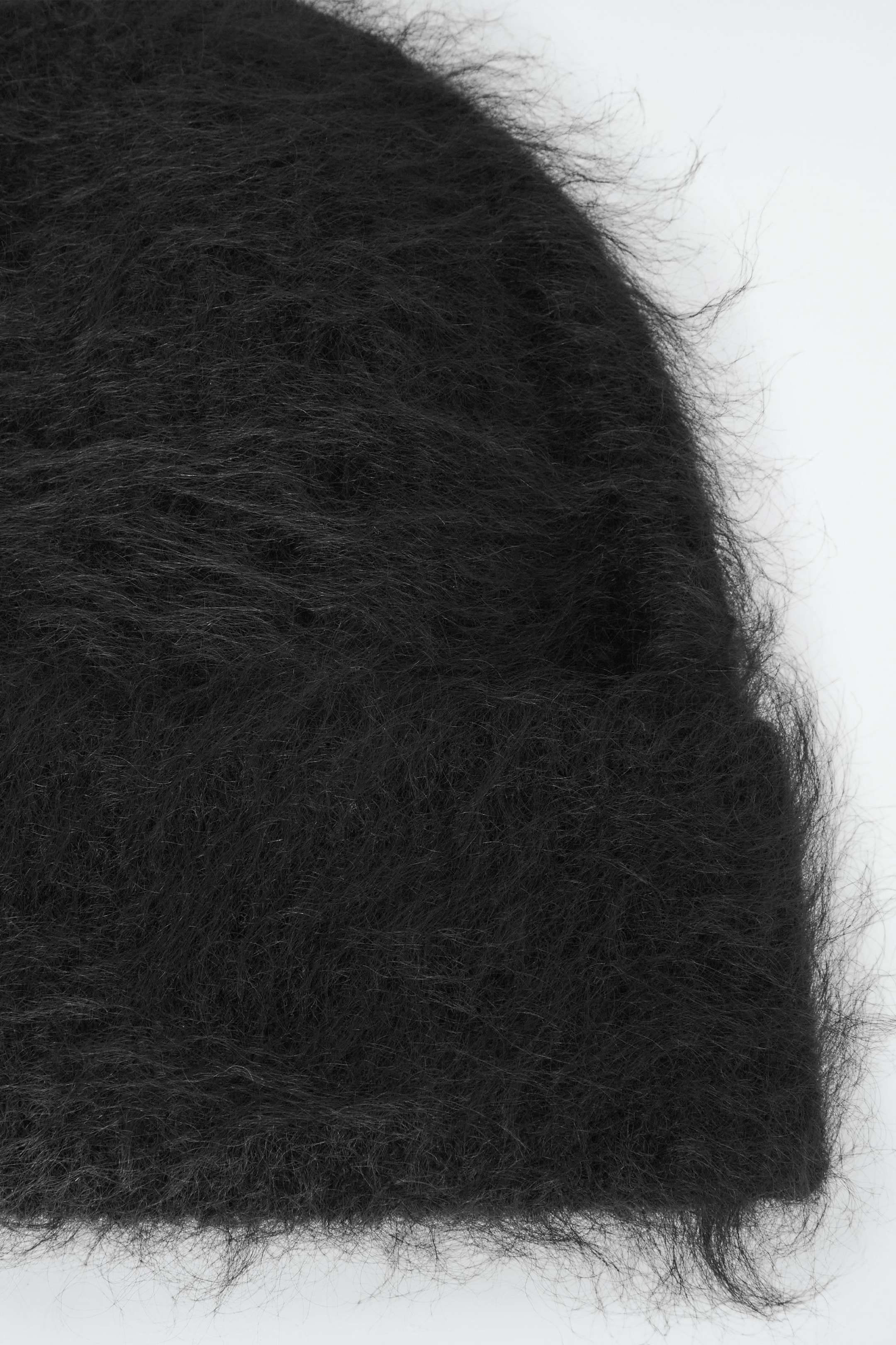 Offered in an enduring black shade, this cosy beanie is knitted from a traceable mohair blend that's been certified by the Responsible Mohair Standard. It's ribbed to keep warmth in and has a soft, fuzzy hand feel and a wide fold-up brim.
