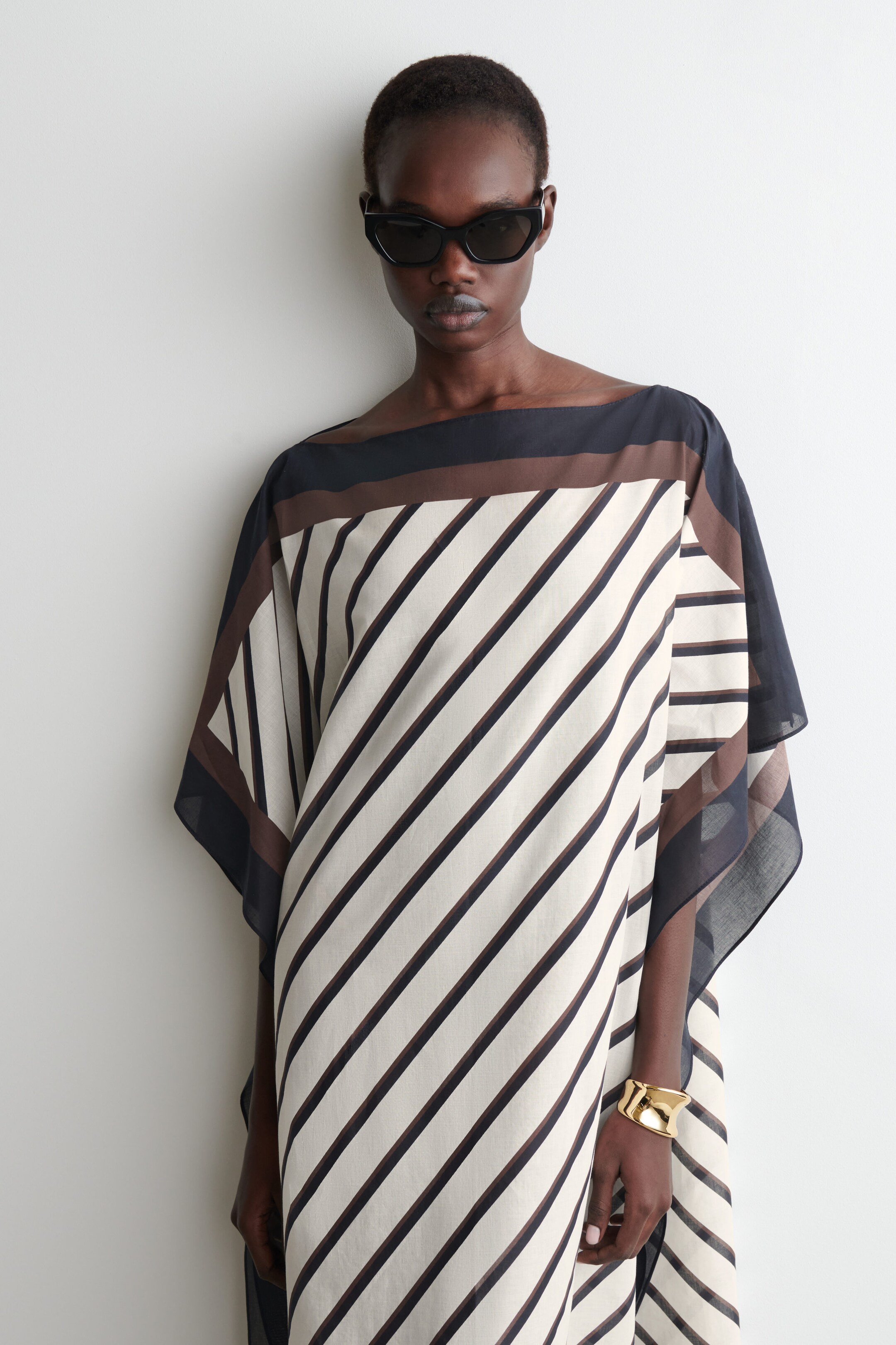 This sophisticated kaftan is the perfect piece for days spent by the water. It's crafted from lightweight cotton in a flowy silhouette and striped in tones of ivory, black and chocolate that will style effortlessly with your swimwear.