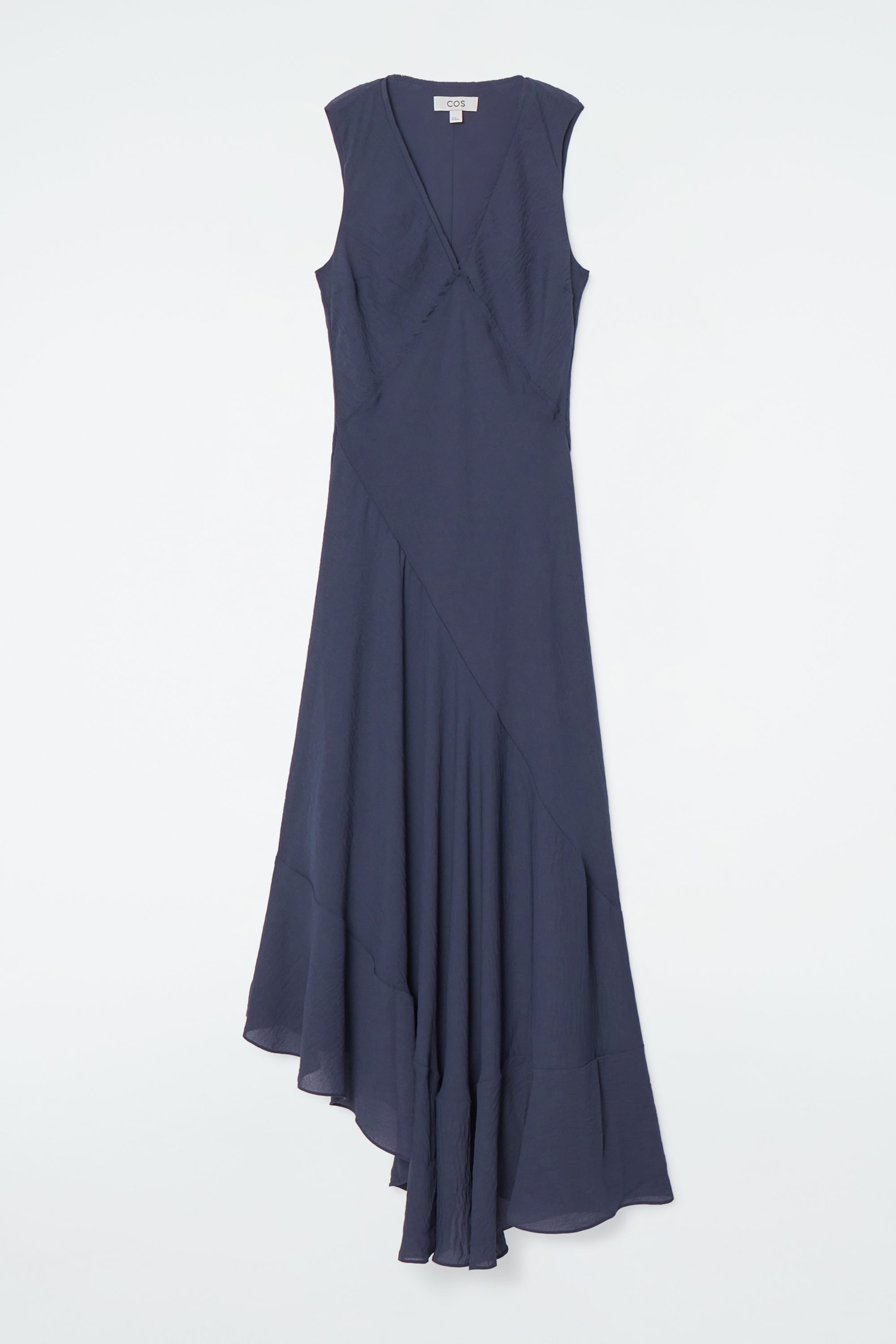 This season heralds the return of romance and this whimsical piece encapsulates the trend. It's crafted from recycled voile, the fibres of which are made from pre- and post-consumer waste, and designed with subtle raw edges, asymmetric seams and a flared hem that lends it a sense of movement. Offset the floaty shape with leather Mary-Jane flats.