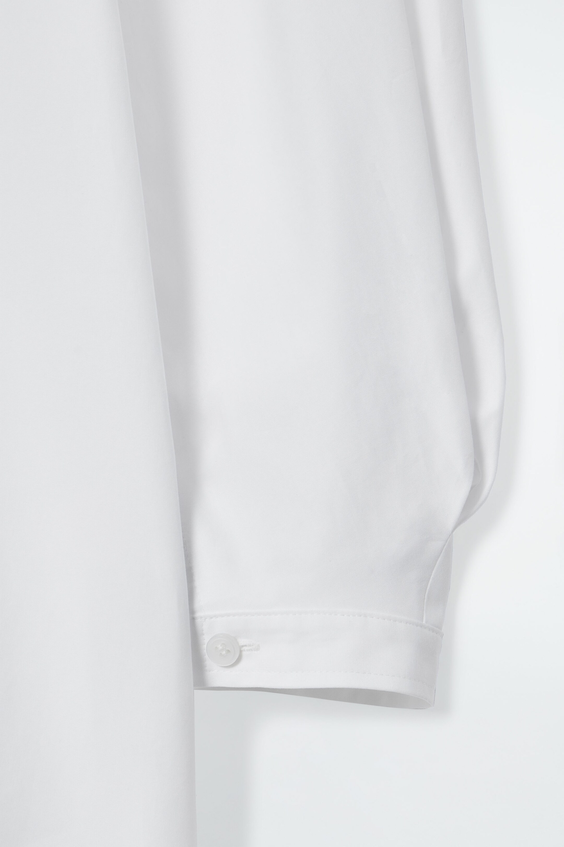 The shirt dress is a modern staple and a cornerstone of the COS wardrobe. Offered in a pristine white palette, this midi version has a grandad collar and pleated shoulders that give shape to the billowing sleeves. It's crafted from lightweight cotton and finished with side-seam pockets.