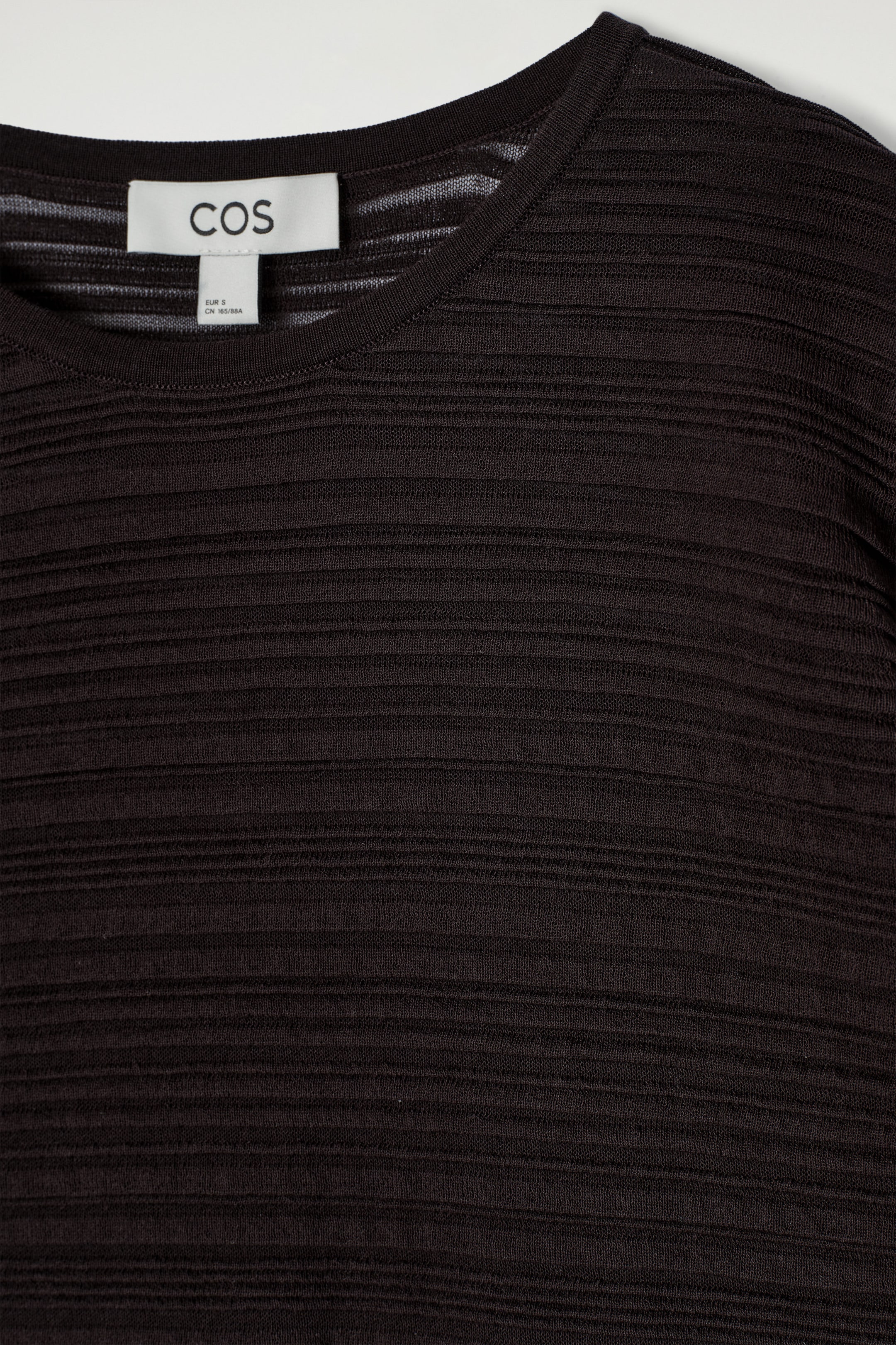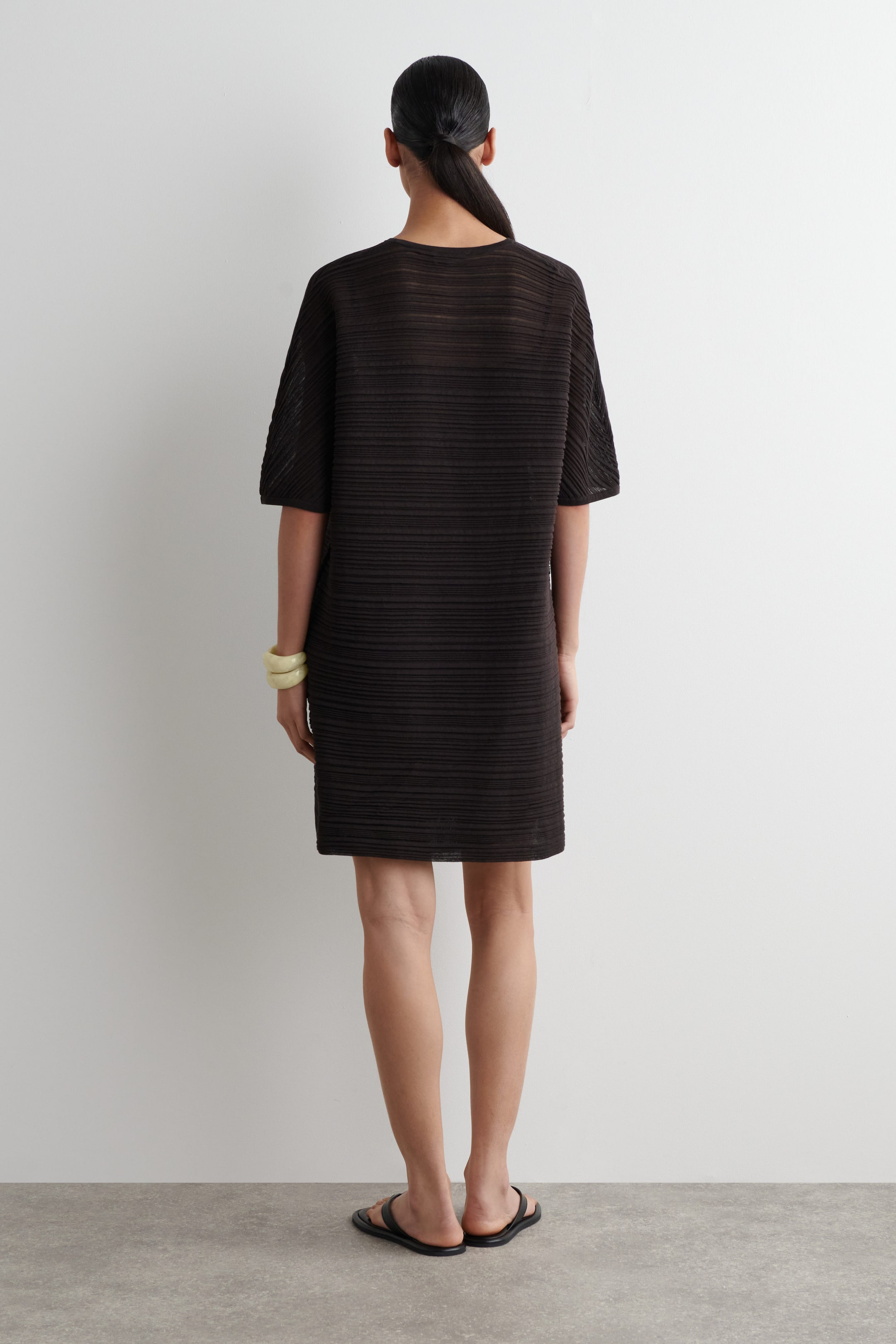 This season, wardrobe heroes are reframed through rich texture and considered craftsmanship. Designed in a tactile ottoman stitch, this cotton-blend dress features subtly transparent, dimensional stripes and is shaped with a crew neckline, a relaxed silhouette and tubular trims. It's underpinned with a slip to temper the transparency.