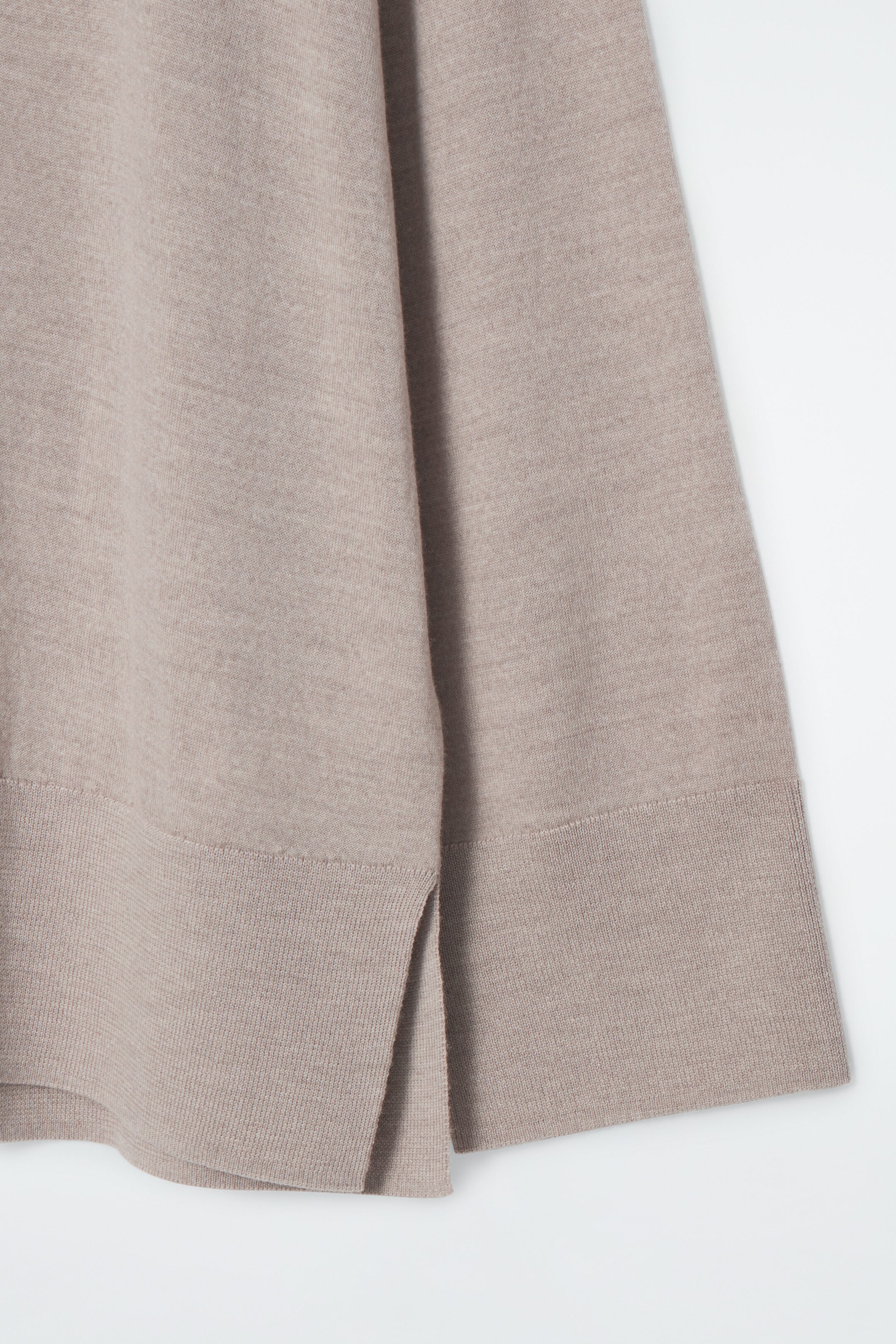 Knitted from premium merino wool, this modern jumper is comfortable yet refined. It comes in a subdued beige tone and is designed with a V-neckline, side slits and a relaxed silhouette. Style it as a set with the matching culottes.