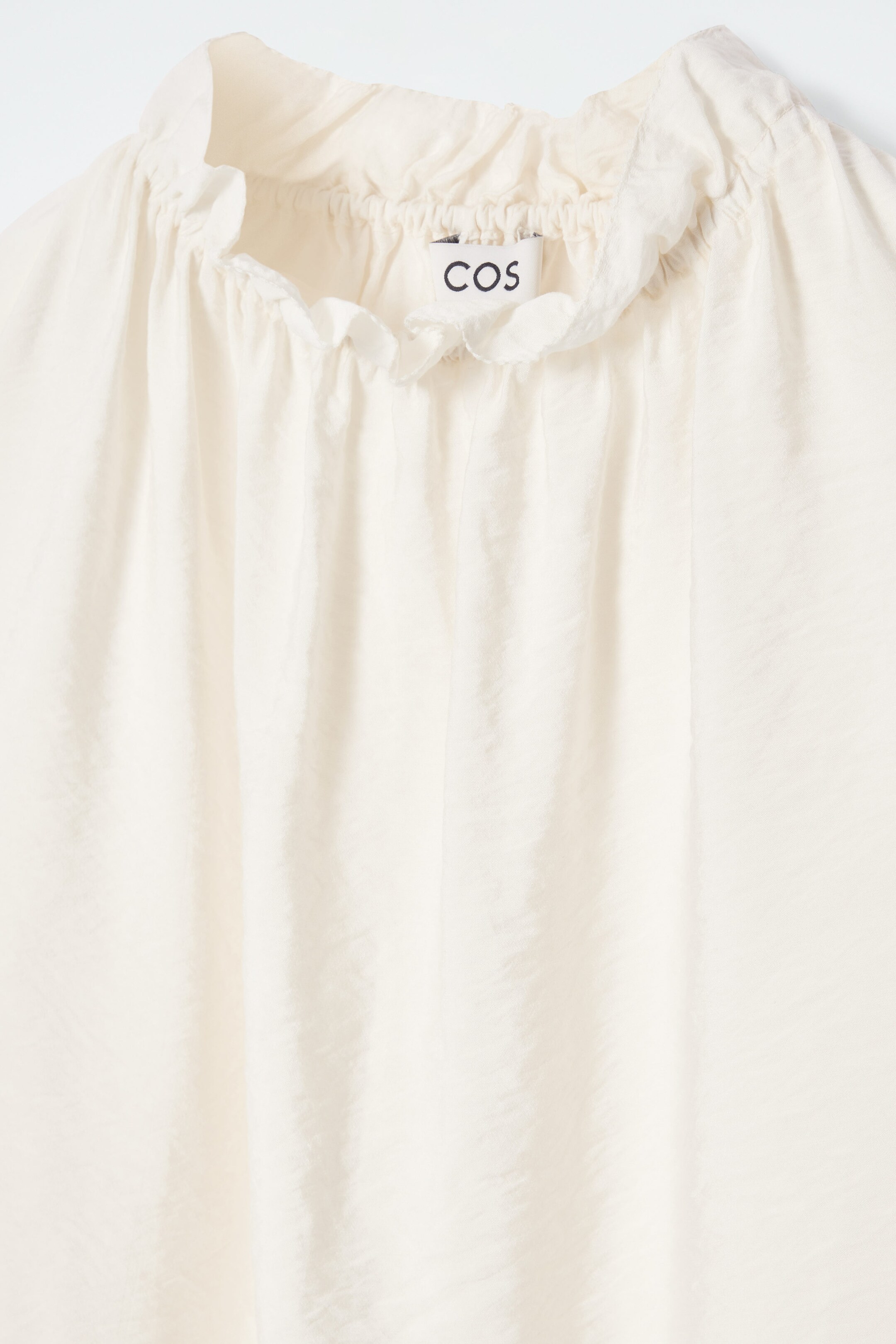 Imbued with a sense of romance, this contemporary blouse is crafted from a fluid ECOVERO™ viscose blend that's softly crinkled for a textured hand feel. It's shaped in a relaxed silhouette and designed with gathered elasticated details that create ruffles at the neckline and cuffs.