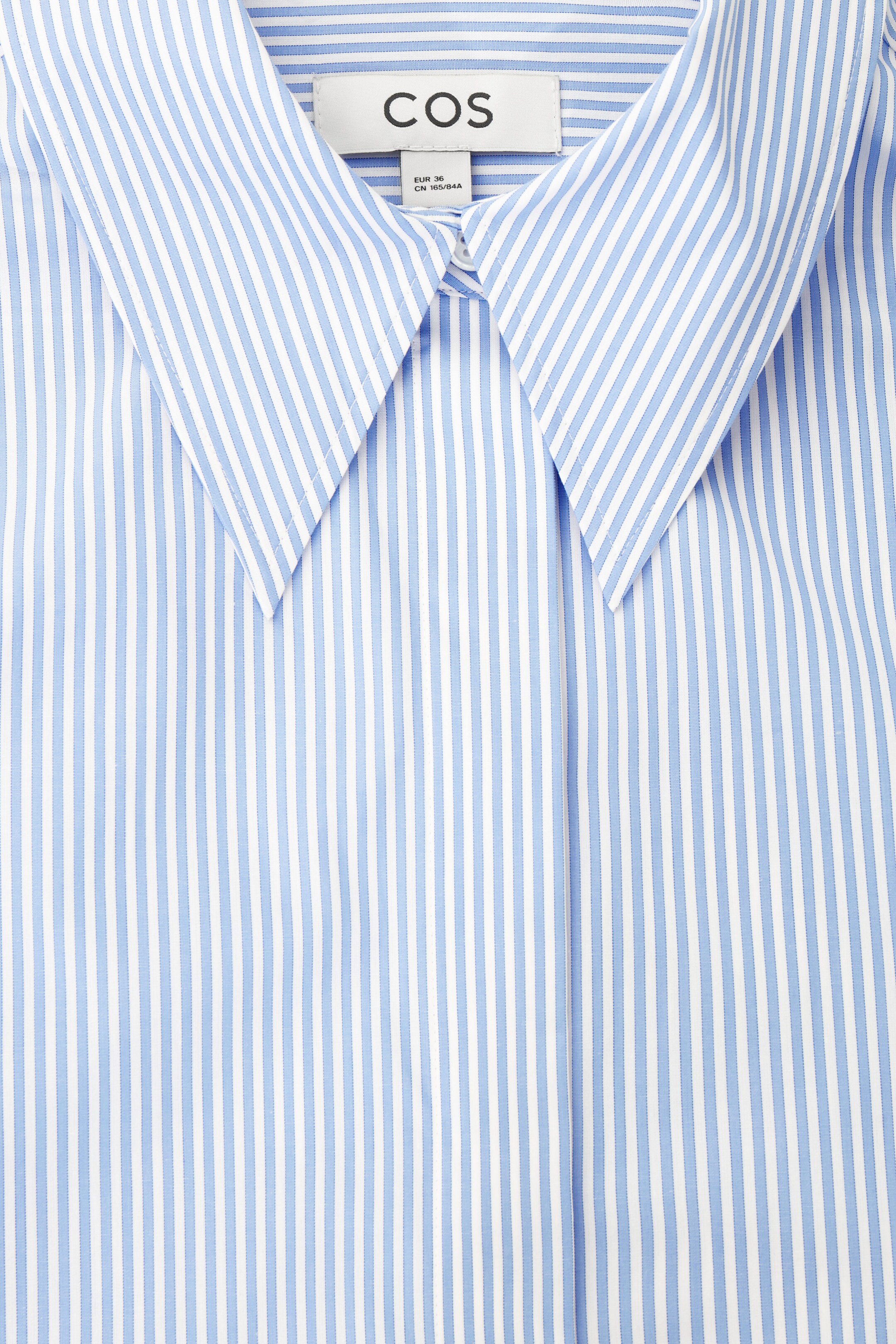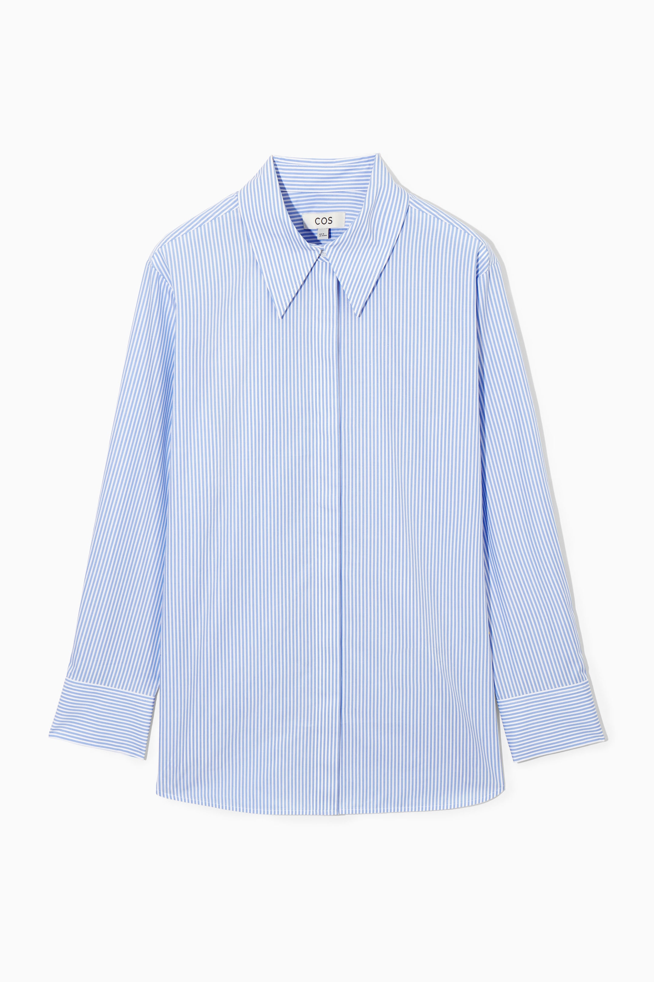 Whether you choose to wear it tucked in or loose, the styling possibilities for the COS relaxed pinstriped shirt are endless. Crafted from pure cotton-poplin that's naturally breathable, it has a concealed placket for a streamlined finish and a double-layered yoke that brings a soft structure to the silhouette. The extended pointed collar, curved hem and buttoned cuffs add the final touches.