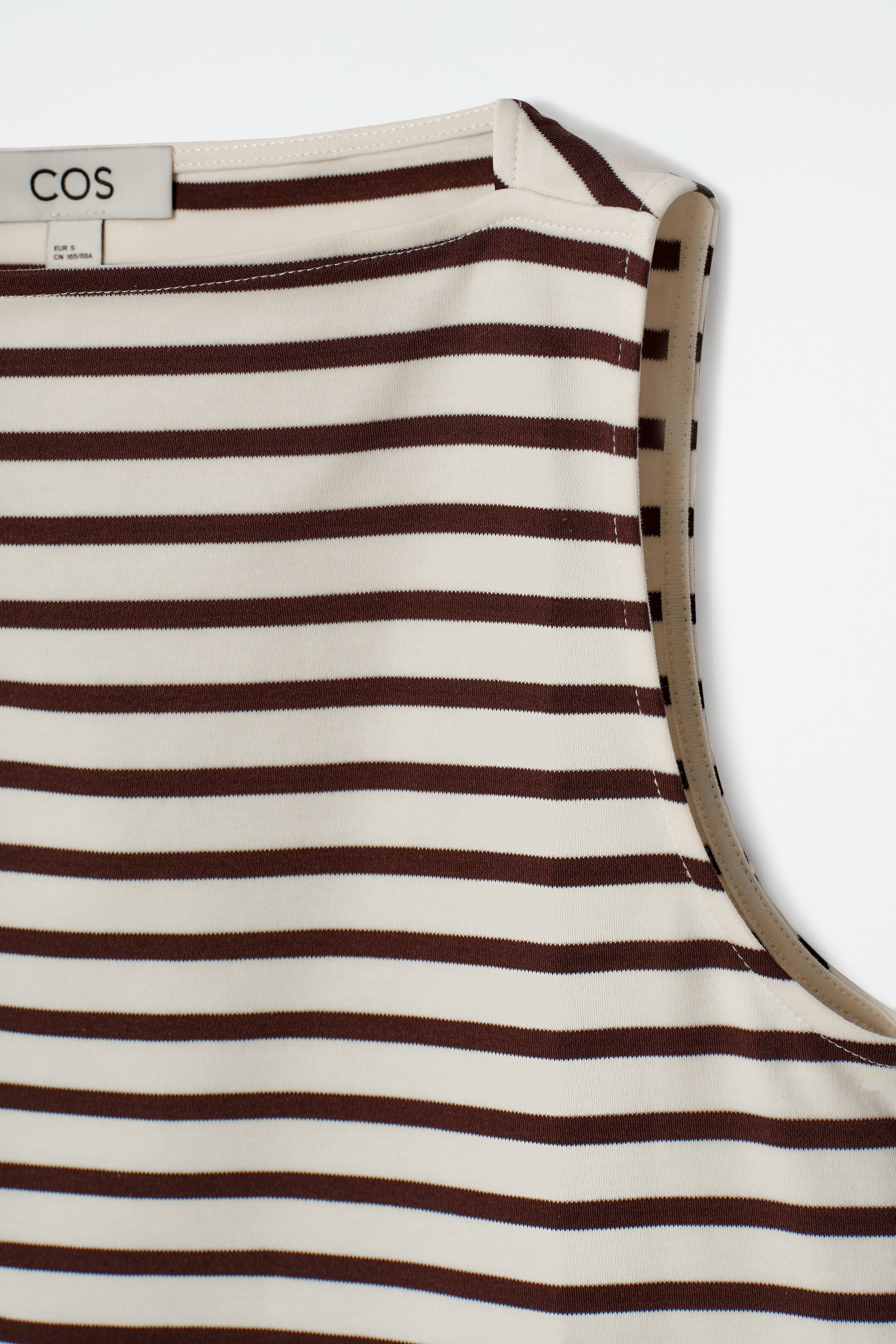 Modern signatures like this tank top are unmistakably COS. Crafted from soft cotton-jersey, it's shaped with a wide boat neckline, tonal topstitching and a subtle racer back silhouette. The chocolate and ivory stripes lend further dimension.